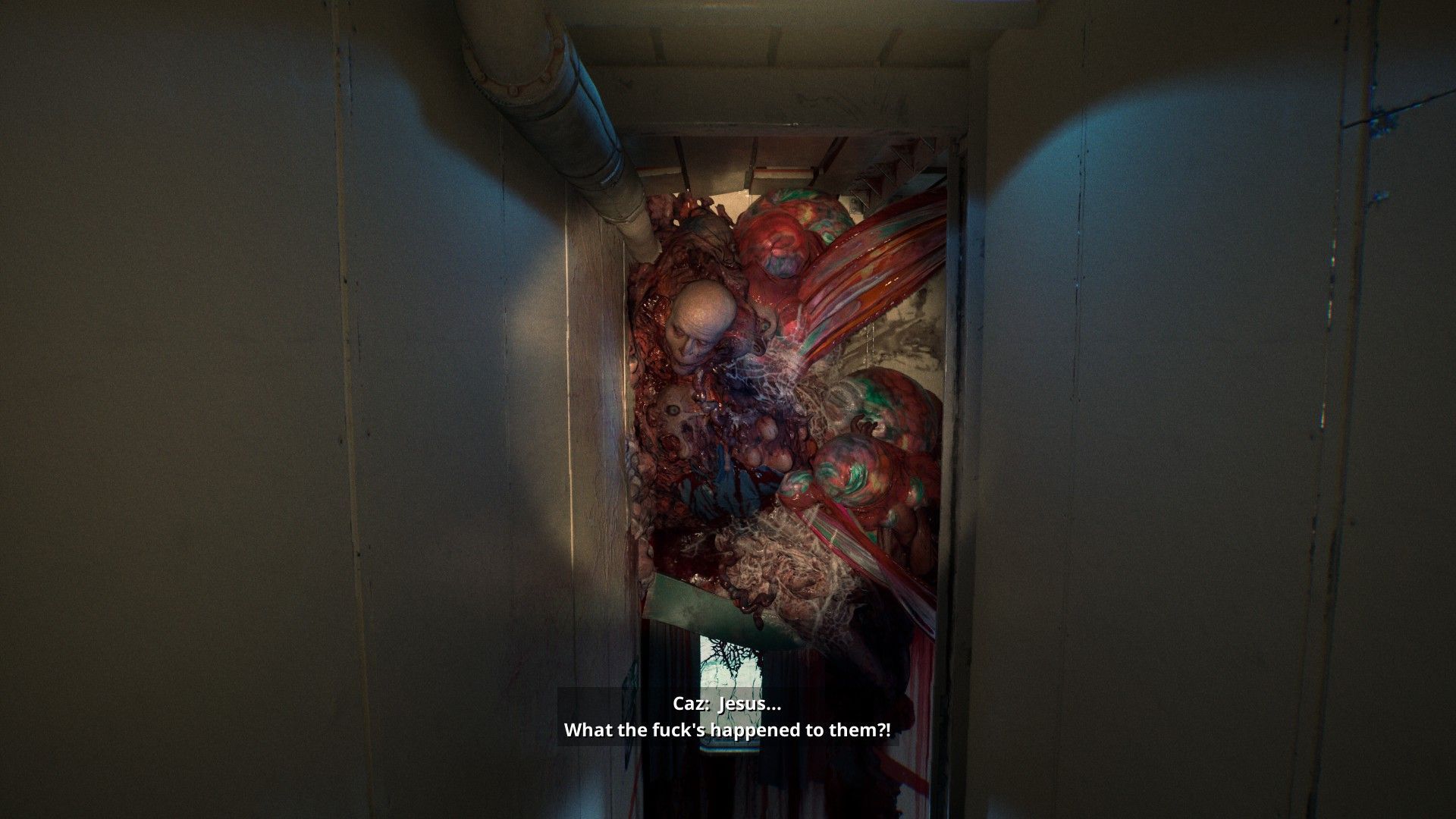Fabularnie czerpie z dorobku Johna Carpentera i Davida Cronenberga (jak wielu innych twórców gier ostatnio) i wrzuca nas w klaustrofobiczny horror rozgrywający się na platformie wiertniczej. Wskakujemy w kombinezon roboczy elektryka Caza McLeary’ego, który wziął tak oddaloną od lądu, żony i dzieci robotę, bo był na bakier z prawem (jak, tego nie wiemy). Zanim na dobre dościgną go konsekwencje złych decyzji, pracownicy placówki dokopują się zbyt głęboko i uwalniają organiczną, rozrastającą się niczym grzybnia potworność, która jednych zabija, innych transformuje w monstra rodem z The Thing.