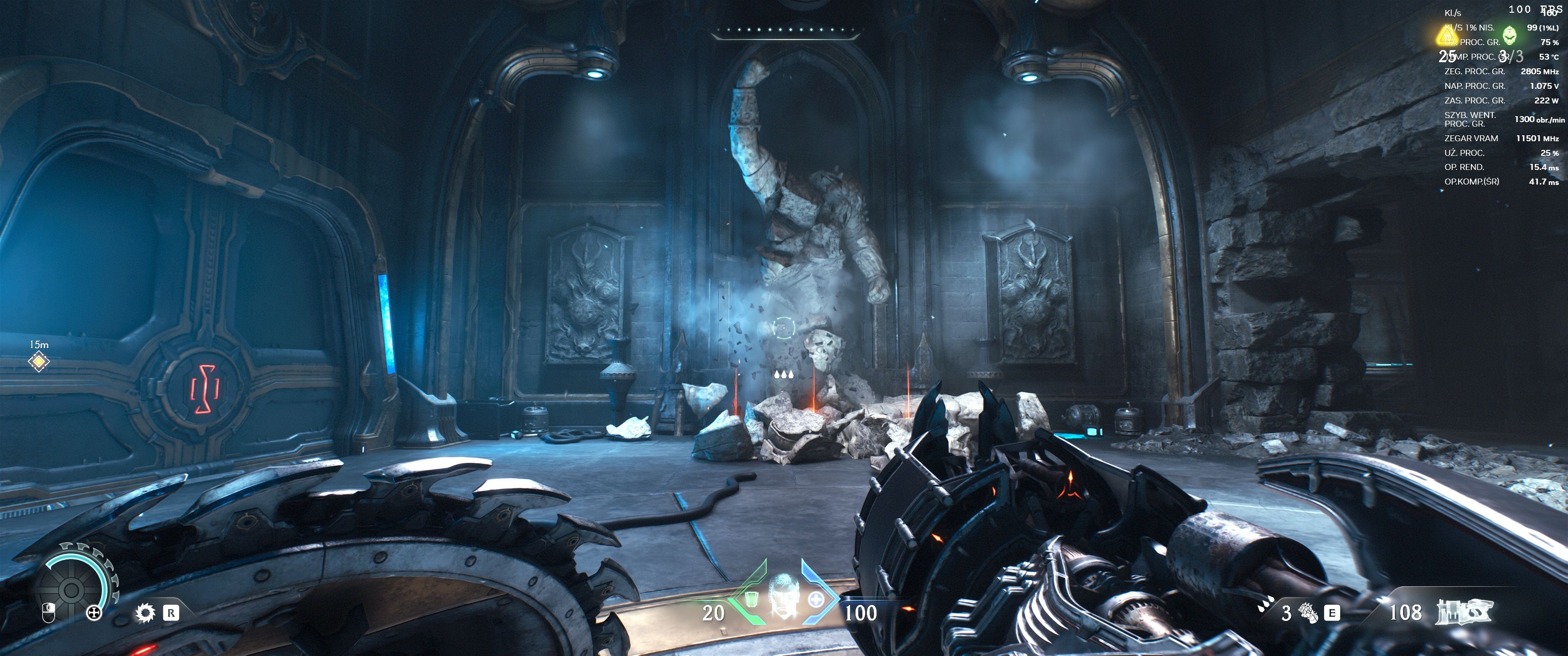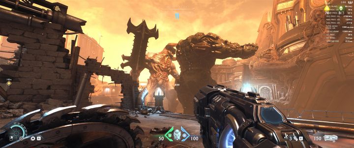 Ponadto cały czas mówimy o rozgrywce bez włączonego path tracingu, który niesamowicie obciąża kartę graficzną. Mogę zakładać, że gdy gra go dostanie, to po włączeniu pełnego śledzenia promieni będę mógł liczyć na 50-60 klatek na sekundę. Tu na pomoc na pewno przyjdzie technologia generowania klatek, która w Doom: The Dark Ages działa bardzo dobrze. W trakcie testów pobawiłem się nią trochę i nie zauważyłem żadnych artefaktów, które były widoczne np. w Indiana Jonesie.
