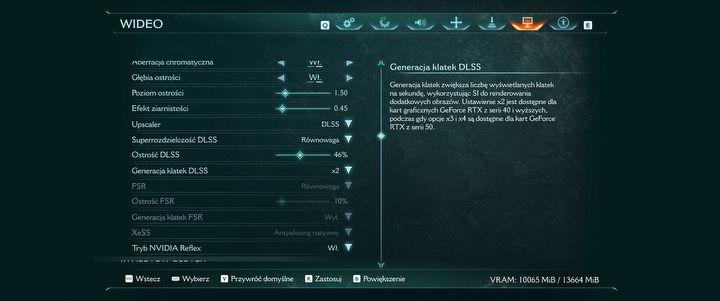 Świetnie wypadły też opóźnienia, bo nawet po włączeniu Multi Frame Generation w tryb x4, nie odczuwałem zwiększonego input lagu, a rozgrywka na myszce była bardzo responsywna. Jeśli nie macie karty graficznej z serii RTX 50, to generowanie klatek w trybie „x2” też działa dobrze i pozwala na przekroczenie 140 fpsów w najbardziej wymagających momentach rozgrywki. Jeśli macie kartę graficzną AMD, to tam również dostępna jest opcja generowania klatek FSR, ale wyłącznie w wersji „x2”.