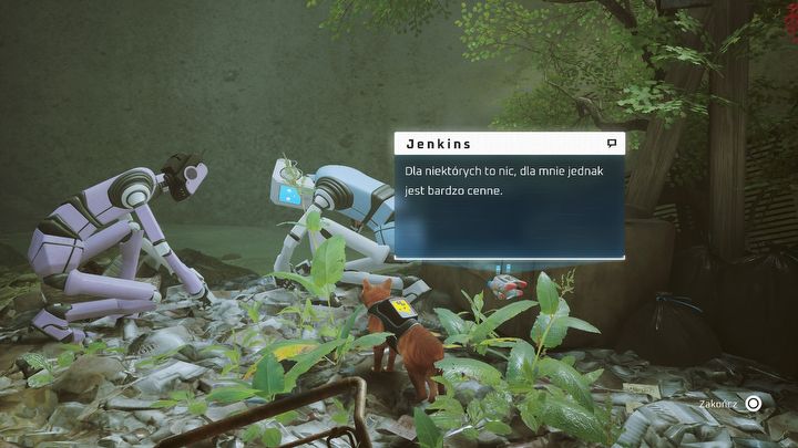 Aby Jenkins wypowiedział to zdanie, należy udać się do Mrowioski, a następnie użyć wiadra, aby dostać się do ogrodu, w którym pracuje on wraz z innym robotem, Moką.