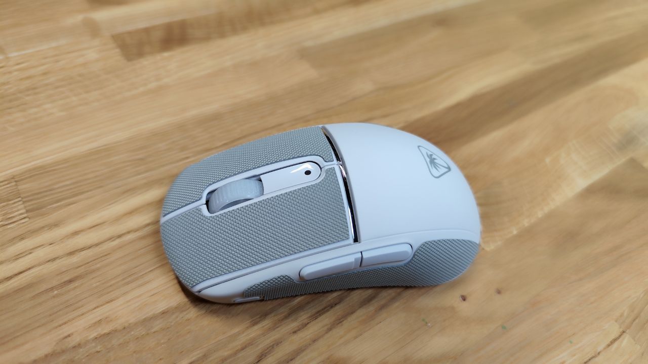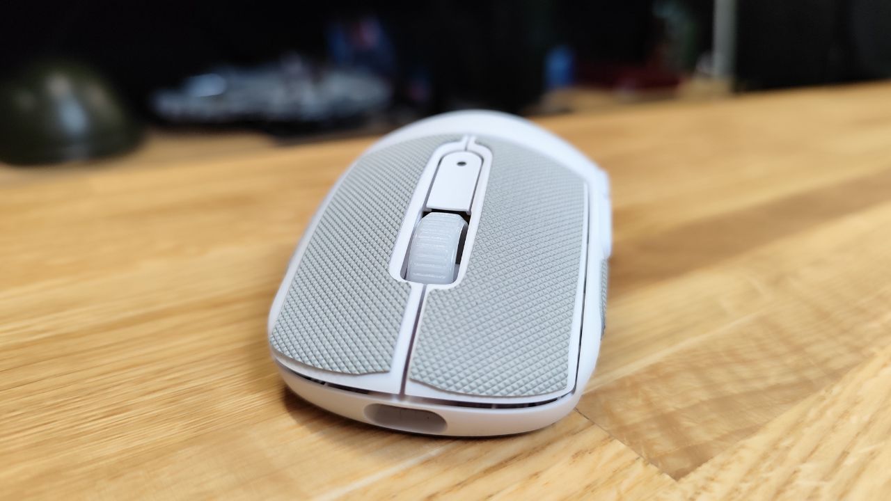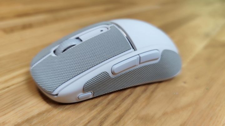 Otrzymałem biały egzemplarz do testów i cóż – jest biały. Konstrukcja jest w pełni ergonomiczna, bez widocznych śladów „gamingowych” i bez podświetlenia. Jedynym źródłem światła jest mała dioda, informująca o stanie naładowania urządzenia oraz o trybie DPI, jaki akurat wybraliśmy. Prosta elegancja, która szczerze mówiąc, coraz bardziej staje się nudna, ponieważ dominuje u większości producentów. Wyprofilowanie konstrukcji jest przystosowane do Claw Grip, ale w innych ułożeniach dłoni myszka również leży całkiem nieźle.