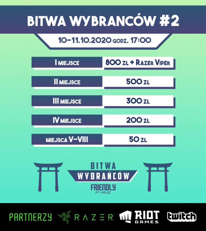 Przypomnijmy, że łącznie odbędzie się osiem rozgrywek turniejowych (zaplanowane są one co dwa tygodnie). Wyniki siedmiu pierwszych zmagań zadecydują o tym, którzy gracze zmierzą się w finalnym spotkaniu (o pozostałych szczegółach poinformujemy już wkrótce). W finale do wygrania oprócz nagród pieniężnych będzie dodatkowy zestaw od Razera – klawiatura Huntsman Mini oraz słuchawki BlackShark V2 – który otrzyma aż czterech najlepszych zawodników!