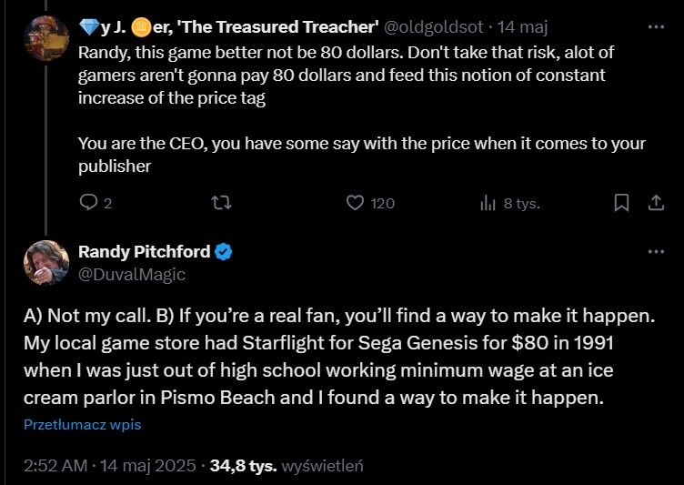 A) Nie moja decyzja. B) Jeśli jesteś prawdziwym fanem, znajdziesz sposób. Mój lokalny sklep z grami miał Starflight na Segę Genesis za 80 dolarów w 1991 roku, kiedy byłem tuż po liceum i pracowałem za minimalną stawkę w lodziarni w Pismo Beach, ale znalazłem sposób. – odparł Randy Pitchford.