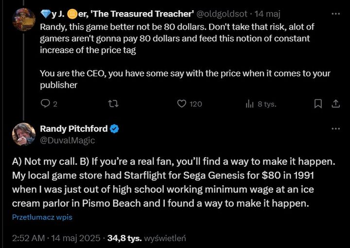 Do wymiany zdań doszło w serwisie X, pod wpisem, w którym Pitchford cieszył się z możliwości wydania Borderlands 4 na konsoli Nintendo Switch 2. Jeden z odbiorców zmienił jednak temat i odradził producentowi ustalenie ceny gry na poziomie 80 dolarów (ok. 302 zł). Odpowiedź szefa Gearbox Software wywołała lawinę negatywnych komentarzy.