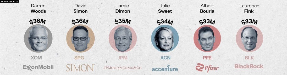Warto wspomnieć, że na wynagrodzenie prezesów elitarnych firm w dużym stopniu składają się akcje danego przedsiębiorstwa. Rzeczywiste wynagrodzenie, które szefowie otrzymali, może być znacząco mniejsze z powodów nieustannych zmian zachodzących na rynku.