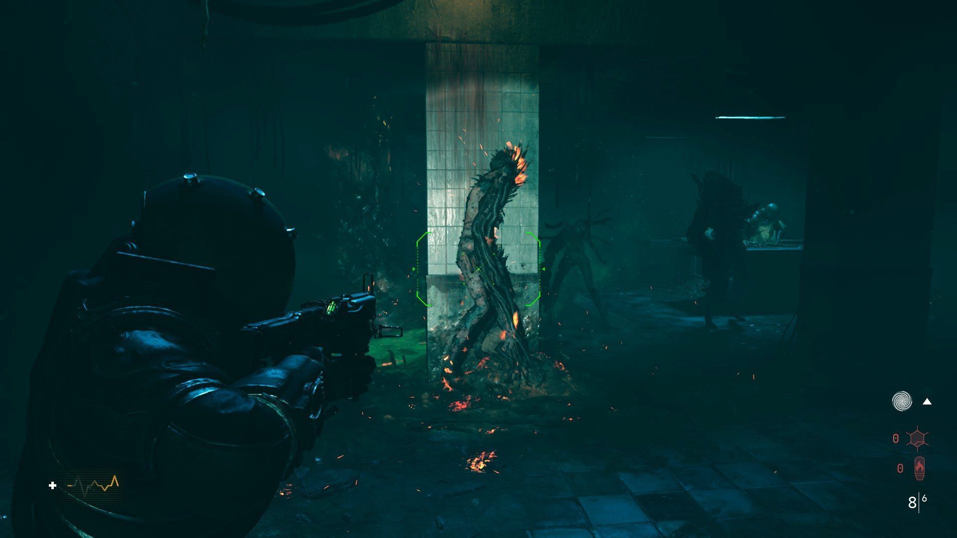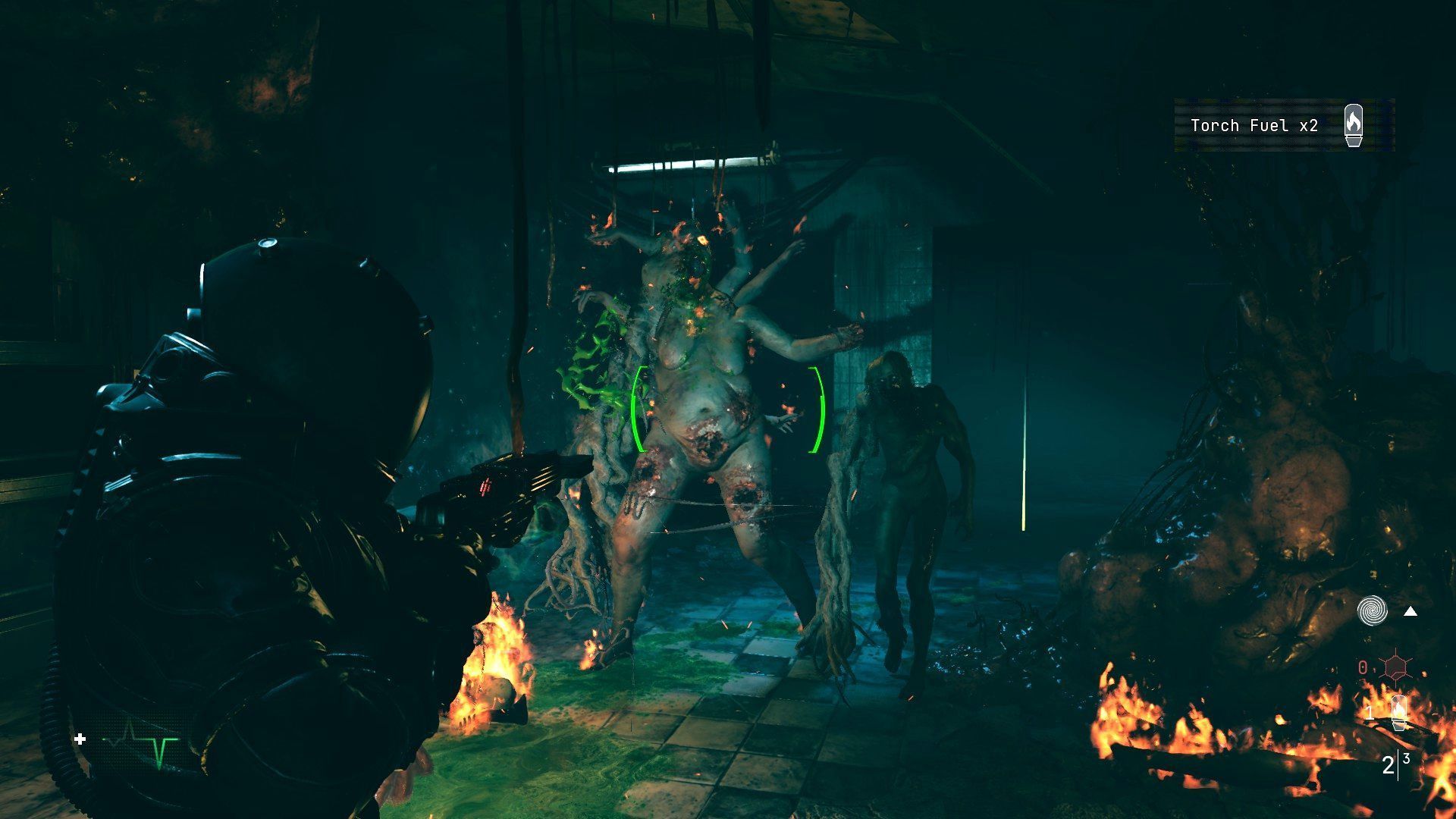 Dwa najważniejsze utrudnienia podczas tej bitwy to stosunkowo mały obszar działania oraz brak wybuchowych beczek lub butli – nie możecie polegać na detonowaniu elementów otoczenia do łatwego eliminowania potworów. Podróżniczka nie może też z kostnicy uciec. Wyjście z tej lokacji zostanie odblokowane dopiero po pokonaniu wszystkich stworów.
