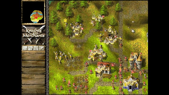 Niestety zarządzanie jednostkami i ich AI to najgorsze elementy Knights and Merchants. Po pierwsze, każdemu oddziałowi wydajemy rozkazy osobno, co zdecydowanie utrudnia kontrolę nad większymi armiami, a koordynacja ataków jest karkołomna. To jednak nie wszystko, gdyż podczas przechodzenia z miejsca na miejsce, wojacy mają tendencję do burzenia formacji i ustawiania się w długie sznurki, jeśli napotykają przeszkody terenowe. Trzeba wtedy bardzo uważać, żeby nie wpakować się w kłopoty i pilnować, gdzie i jak nasi żołnierze chadzają. Zatrzymują się oni dopiero po tym, jak ich dowódca (osoba z flagą) dojdzie na wyznaczoną pozycję. Co to oznacza? Jeżeli jakieś inne jednostki wyprzedzą kapitana podczas marszu, to miną miejsce zbiórki i będą iść dalej, czasami ku własnej zgubie.