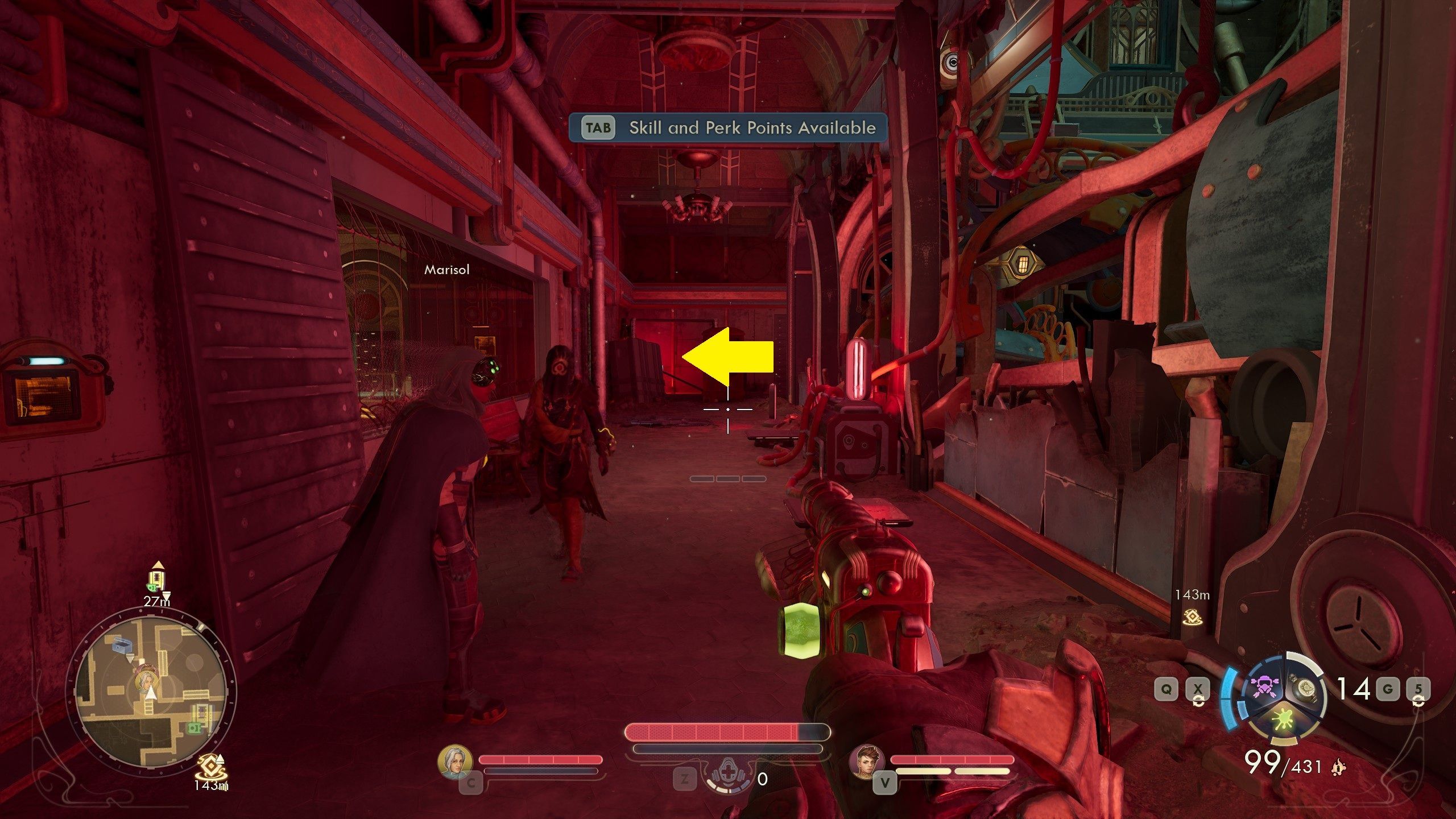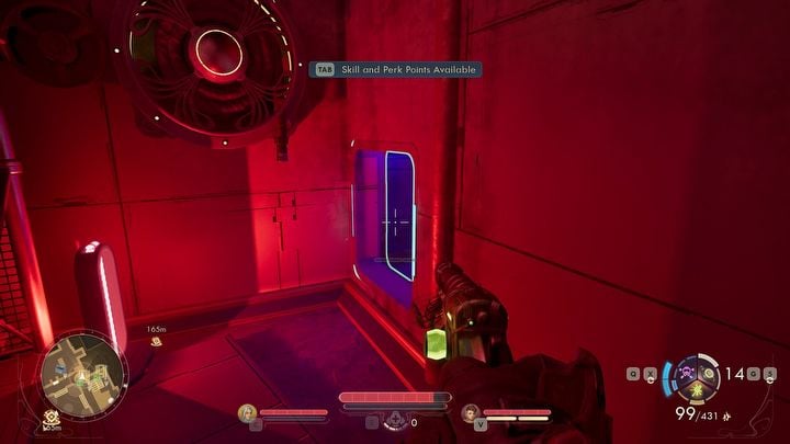 Na końcu czerwonego korytarza znajdziecie szyb wentylacyjny. Wejdźcie do niego i przejdziecie do zamkniętego pomieszczenia.