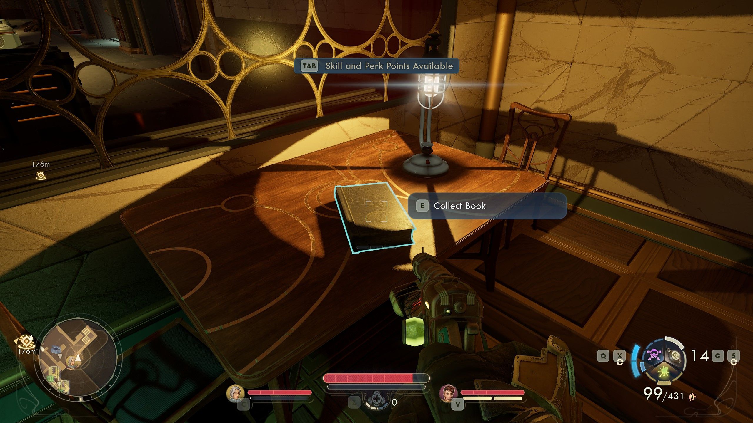 Na stoliku znajdziecie pierwszą z książek szukanych przez badaczki. Następnie możecie przywrócić zasilanie do zablokowanych drzwi i wyjść z powrotem do biblioteki. Pierwsza część za dania za Wami.