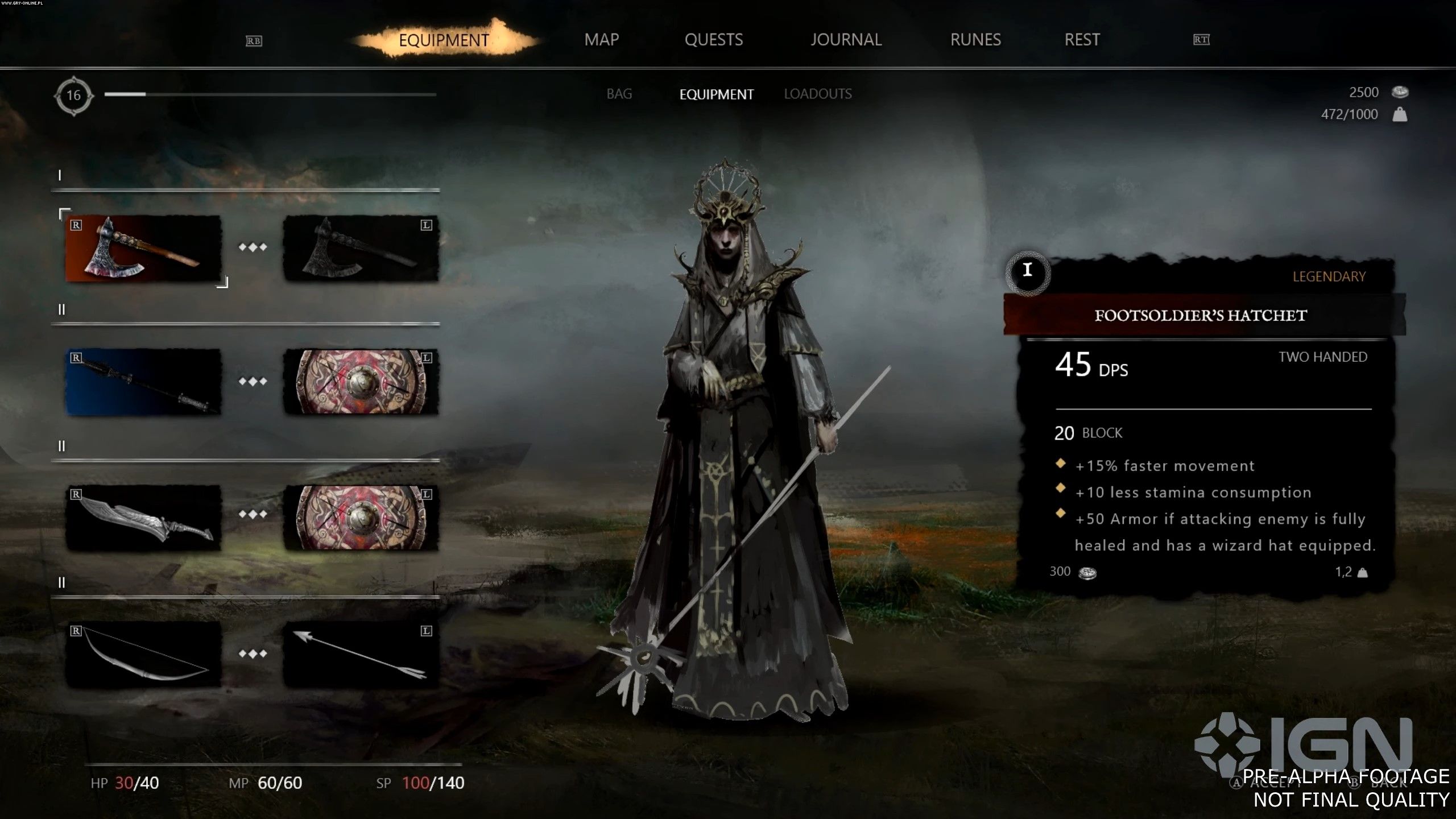 Tam bohater przyjmuje zadanie od kwatermistrza Fearghasa i udaje się do kopalni (deweloper prowadzący gameplay zaznacza, że nie jest to ostateczna wersja tego questa, a zatem raczej nie musimy obawiać się spoilerów z finalnej wersji gry), gdzie następuje prezentacja wczesnej wersji systemu ekwipunku (7:37), odpoczynku (8:35) oraz gotowania (9:00).