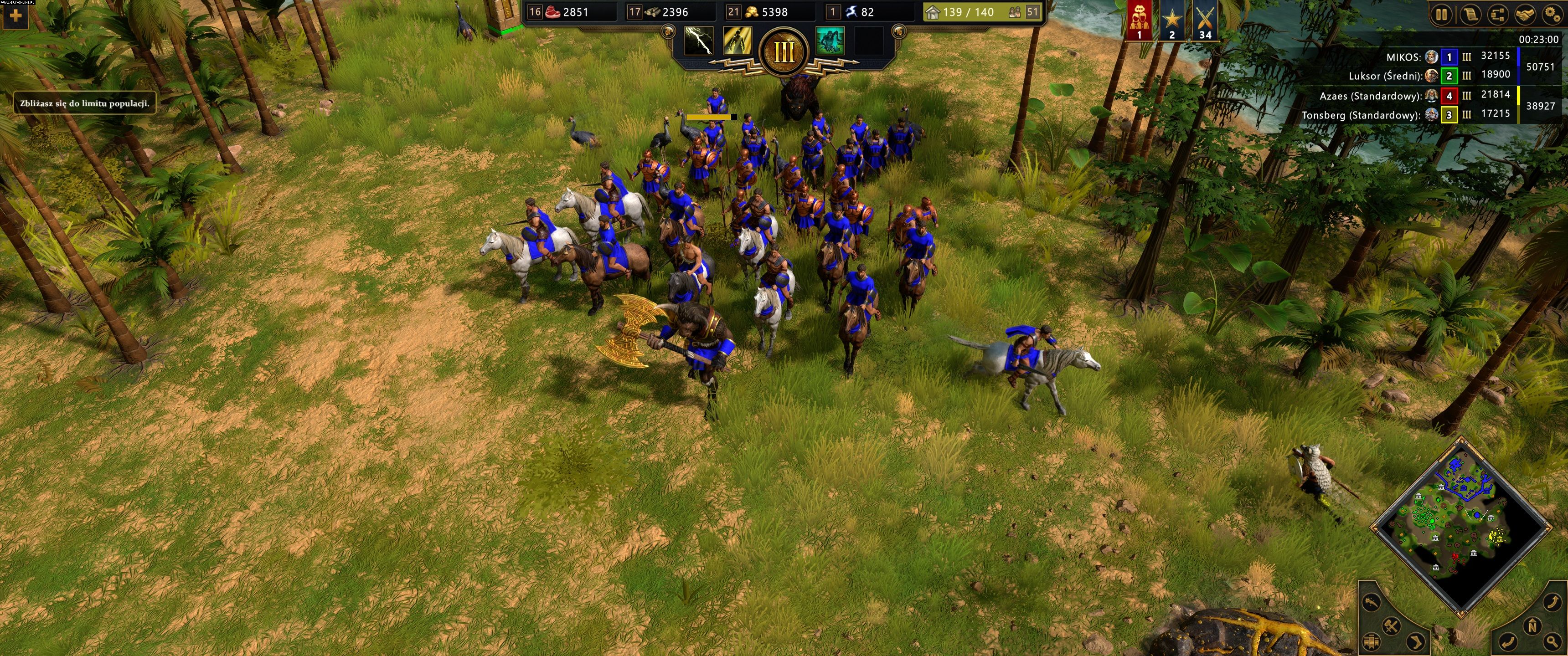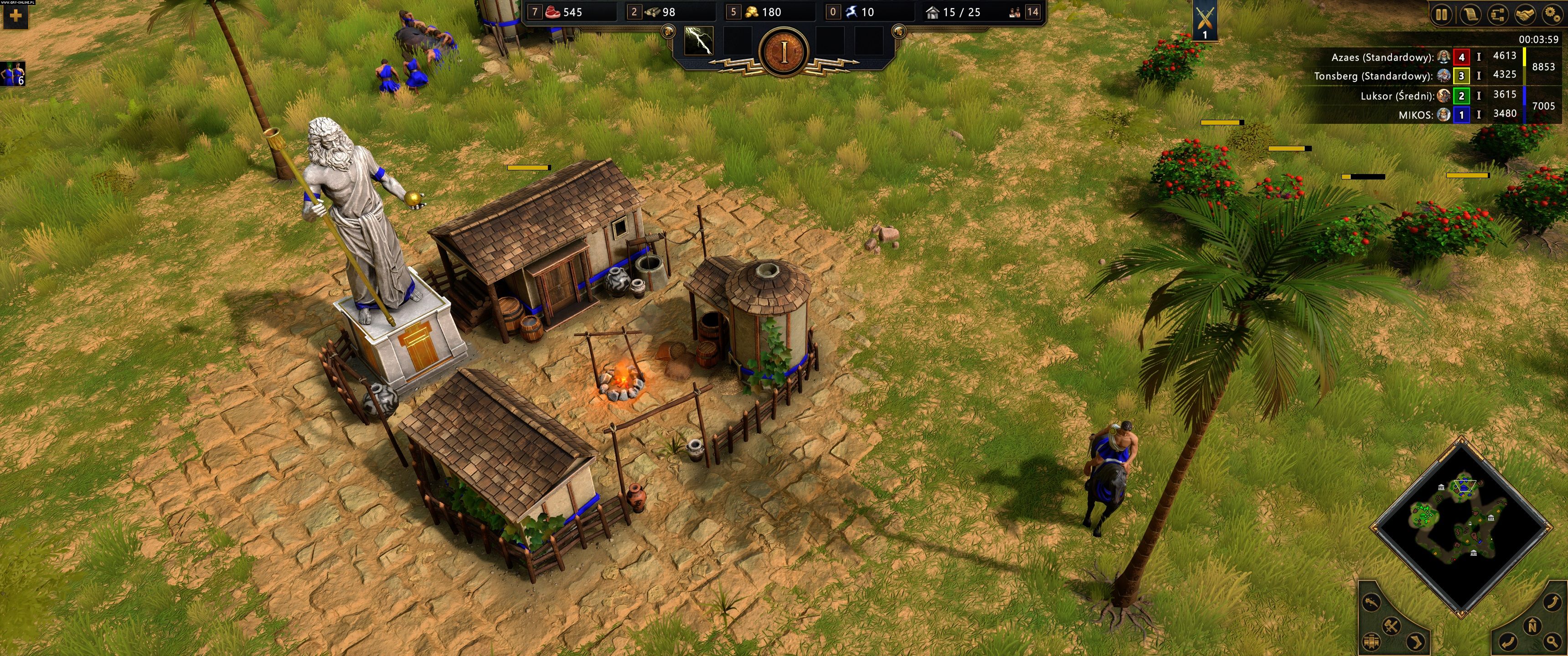 Grafika w Age of Mythology: Retold to coś, co możecie kojarzyć z Age of Empires III: Definitive Edition, ale w lekko podrasowanej wersji. Najbardziej wyróżniają się tutaj pełne szczegółów, znakomicie oteksturowane i oświetlone budynki. Są tak dobrze i dokładnie zrobione, że nawet w ekstremalnym przybliżeniu nie tracą detali. Przy pierwszym kontakcie obiekty w grze przypominają nieco dwuwymiarowe sprite’y z AoE 2, ale w rzeczywistości są to modele w pełnym 3D. Muszę przyznać, że jakość animacji momentami wprawiała mnie w zachwyt, bo jeśli miałbym coś zarzucać oryginalnemu Age of Mythology, to na pewno to, że animacje były dość sztywne, nawet jak na swoje czasy. Tutaj twórcy przebudowali je niemal od zera i efekty są iście piorunujące.