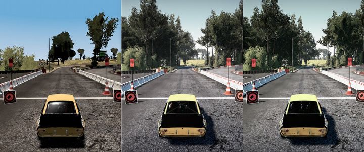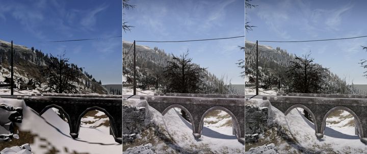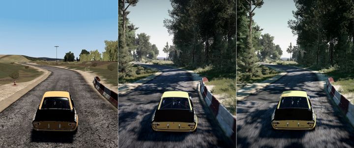 Spadki rozdzielczości (nawet do 480–648p, co po podłączeniu konsolki do zewnętrznego ekranu i przeskalowaniu obrazu wygląda koszmarnie), usunięte odbicia w przestrzeni, cienie przypominające migoczące masy pikseli, brak okluzji otoczenia, doczytujące się na oczach gracza elementy, roślinność… nie, o niej lepiej nawet nie wspominać. Zobaczcie sami: