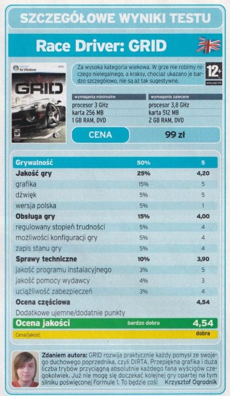 To jednak nic w porównaniu do metody, z której korzystało jedno z największych czasopism tematycznych na naszym rodzinnym poletku. Niektórzy z Was mogą kojarzyć słynną tabelkę z Komputer Świata Gry, która do swoich ocen stosowała średnią ważoną, żeby podkreślić znaczenie poszczególnych aspektów produkcji w odniesieniu do innych: