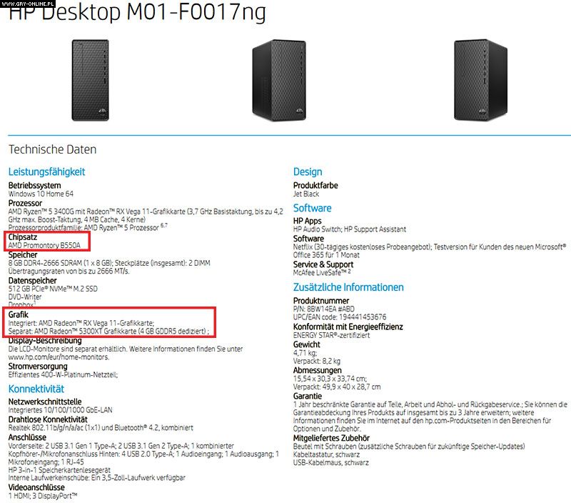 Obie konfiguracje mają zostać dostarczone do nabywców odpowiednio 12 i 8 października. To sugeruje, że premiera karty graficznej AMD Radeon RX 5300 XT może odbyć się już w przyszłym miesiącu (przynajmniej w systemach OEM). Według opisu, karta graficzna ma być wyposażona w 4 GB pamięci GDDR5, a jej nazwa sugeruje, że powinien to być układ z rodziny Navi. Chipset AMD B550A również figuruje w specyfikacji obu modeli. Musimy jednak pamiętać, że zarówno płyta główna, jak i karta grafiki są na razie obecne jedynie w ofercie całego zestawu, a nie jako osobne podzespoły. Dlatego nie możemy wykluczyć, że to nie żadne nowości, tylko przemianowane nazwy znanych układów, stworzone wyłącznie do gotowych konfiguracji.