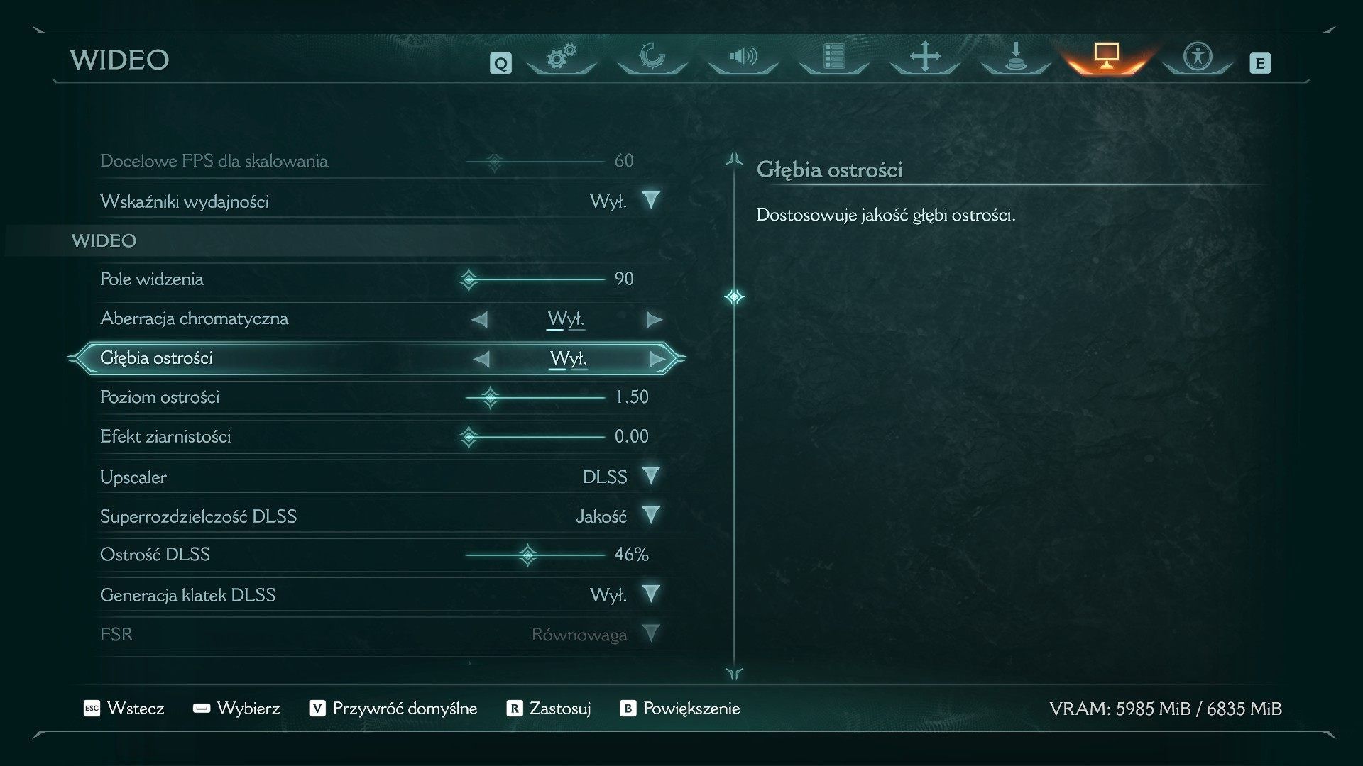 W tak dynamicznej, pełnej ruchu grze jak Doom The Dark Ages warto zadbać o jak największą klarowność na ekranie. Z tego też powodu wolę WYŁĄCZAĆ następujące, graficzne „upiększacze”: