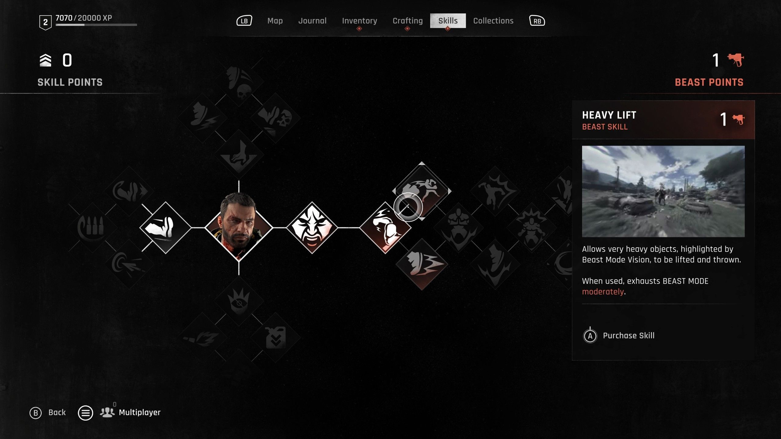 Polowanie na chimery Barona uzasadnione jest nie tylko fabularnie, ale i gameplayowo, gdyż po pokonaniu danego monstrum zdobywamy punkty umiejętności potrzebne do rozwijania zdolności „bestii”. W The Beast jedna część drzewka umiejętności poświęcona jest parkourowi i walce, a druga właśnie zdolnościom tytułowej „bestii”. Skille znane z poprzednich części, jak kop z wyskoku czy lądowanie z wysokości, poprzedzone naciśnięciem właściwego przycisku na kontrolerze/klawiaturze, są tutaj obecne, ale znajdzie się też coś nowego.