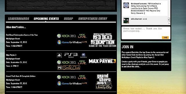 Na stronie wydarzeń wieloosobowych w usłudze Social Club studia Rockstar Games obok zapowiedzi imprezy zaplanowanej na 13 września, związanej z grą Red Dead Redemption, pojawiło się logo platformy Games for Windows Live. Niektórzy upatrywali w tym nadchodzącej zapowiedzi tytułu w wersji na pecety. Jednak po kilku godzinach nadzieje fanów zostały po raz kolejny ostudzone wraz z aktualizacją strony.