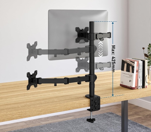 Dzięki uniwersalnej budowie stojak BONTEC sprawdzi się w przypadku laptopów o przekątnej ekranu do 17 cali oraz klasycznych monitorach o maksymalnej przekątnej 27 cali. Jego podstawa pozwala na wysunięcie naszych urządzeń na maksymalnie 42,5 cm wysokości od poziomu biurka, a intuicyjny, przykręcany ręcznie zacisk sprawia, że z łatwością zamontujemy całą konstrukcję lub zmienimy jej położenie.