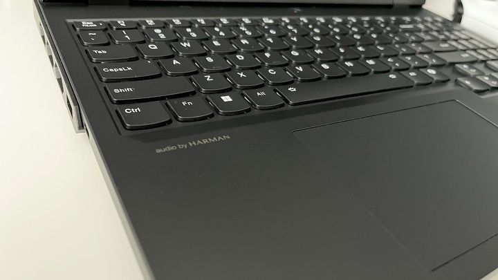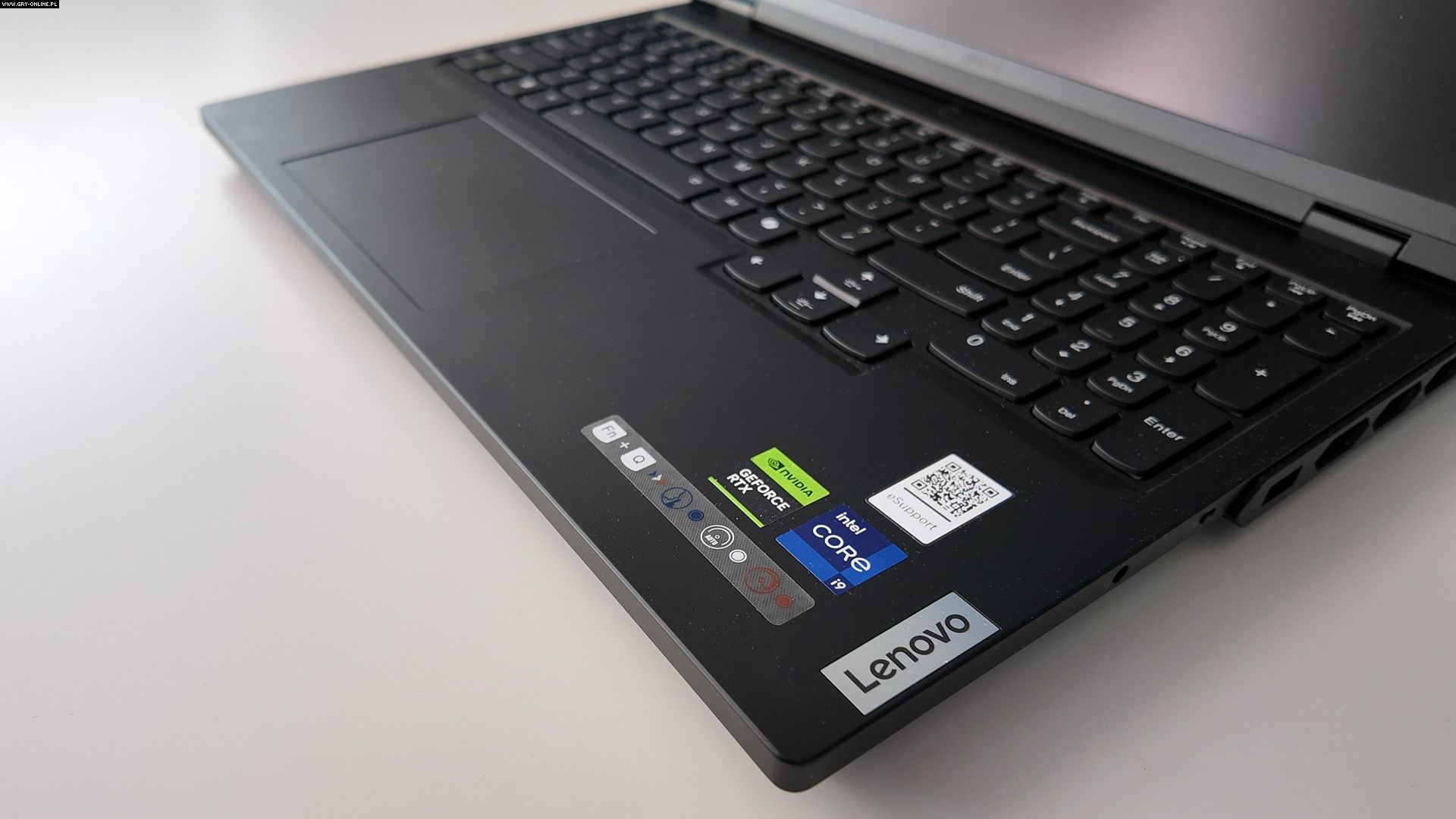 Przy ocenie klawiatury muszę wziąć pod uwagę fakt, że jest to laptop gamingowy, a nie biznesowy – wygoda pisania jest tu oczywiście mniejsza, ale ogólnie zadowalająca. W tanim laptopie do grania za 5 tysięcy miałem wrażenie, że klawisze zanurzają się w budyniu. W Legionie Pro 7i skok jest zdecydowanie mniejszy i bardziej sztywny. „Biznesowej” wygody nie ma, ale pisanie tekstów na pewno nie byłoby katorgą. Gładzik – nic specjalnego, przydaje się do awaryjnego użytku, ale już samo dołączenie przez producenta podkładki sugeruje, że z takim laptopem używa się domyślnie myszki.