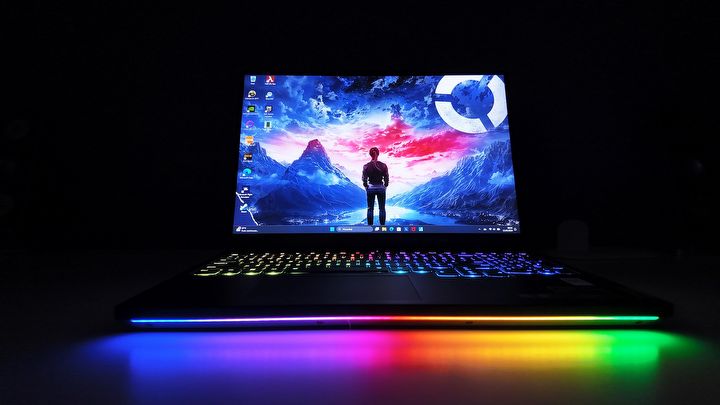 Przy pierwszym uruchomieniu mocno zapada w pamięć oświetlenie RGB. Mamy tutaj nie tylko osobne podświetlenie każdego klawisza na klawiaturze, ale również pasek LED ukryty pod dolną krawędzią obudowy. Generalnie nie należę do fanów migających kolorów podczas użytkowania komputera, ale przyznam, że ta dolna listwa nawet mi się spodobała i w ciemnym pomieszczeniu tworzy to całkiem niezły klimat, o wiele ciekawszy, niż podświetlenie samej klawiatury. Tryby świecenia można zresztą bardzo szybko zmienić skrótami klawiszowymi.