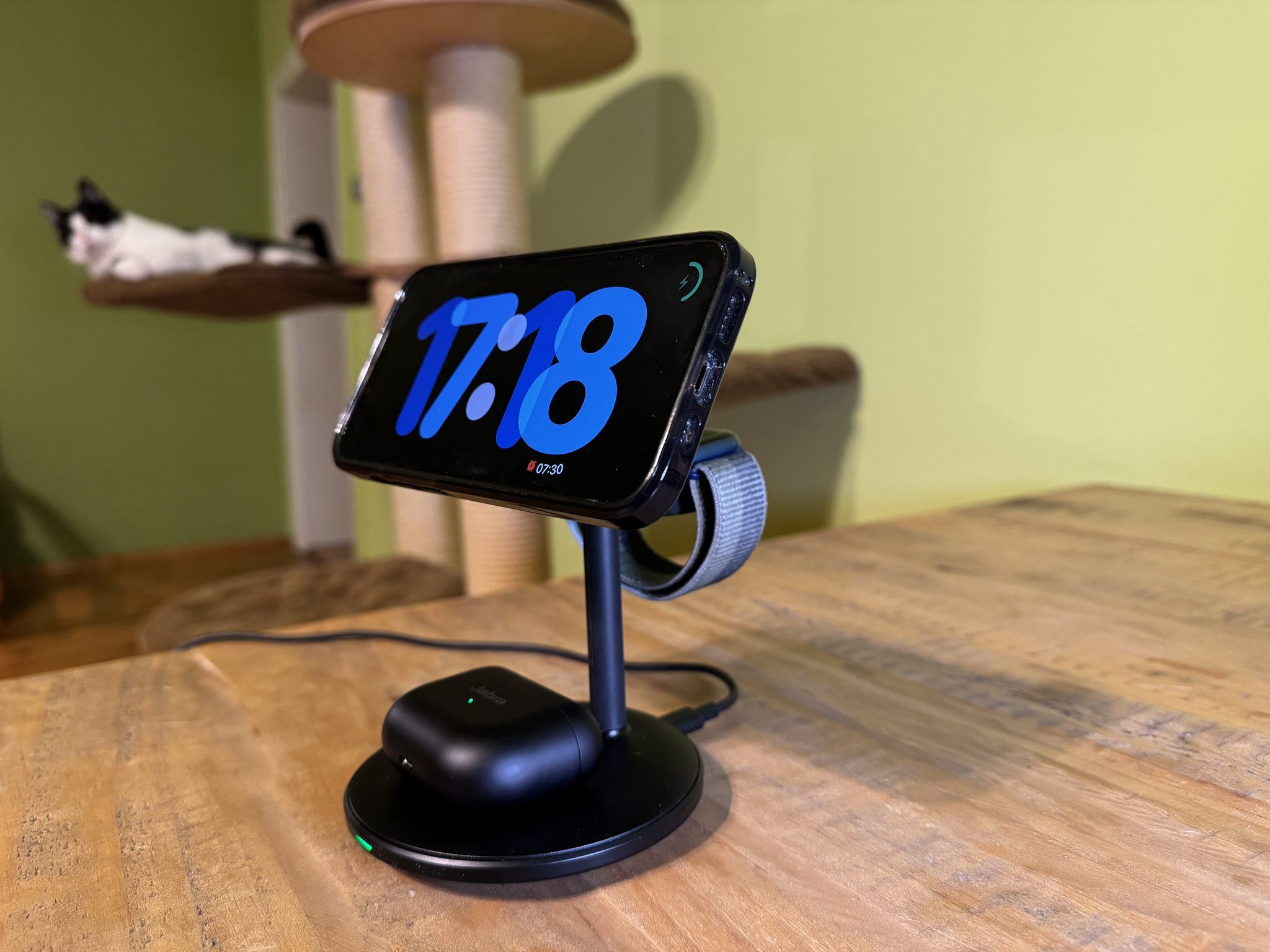To, co jednak w takich stojakach ładujących cieszy najbardziej to możliwość przekształcenia smartfona w podręczny zegarek, kalendarz czy ramkę ze zdjęciami. Tryb czuwania wykorzystuje funkcję zawsze włączonego ekranu dostępną w modelach iPhone 14, 15 i 16 Pro oraz Pro Max.