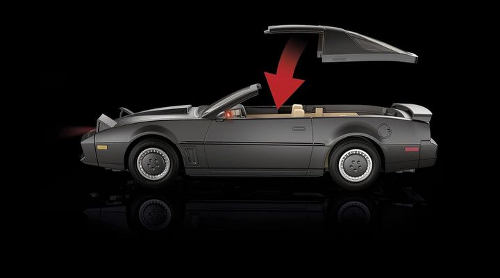Na tym jednak zabawa się nie kończy. Pojazd posiada również podnoszone przednie światła, dzięki czemu w jednej chwili można przełączyć go w tryb rodem z lat 80. Tył także skrywa niespodziankę w postaci obracanej tablicy rejestracyjnej. A gdyby komuś było mało, Playmobil dorzucił jeszcze zdejmowany dach, pozwalający zajrzeć do środka i obejrzeć futurystyczną deskę rozdzielczą oraz charakterystyczną kierownicę.