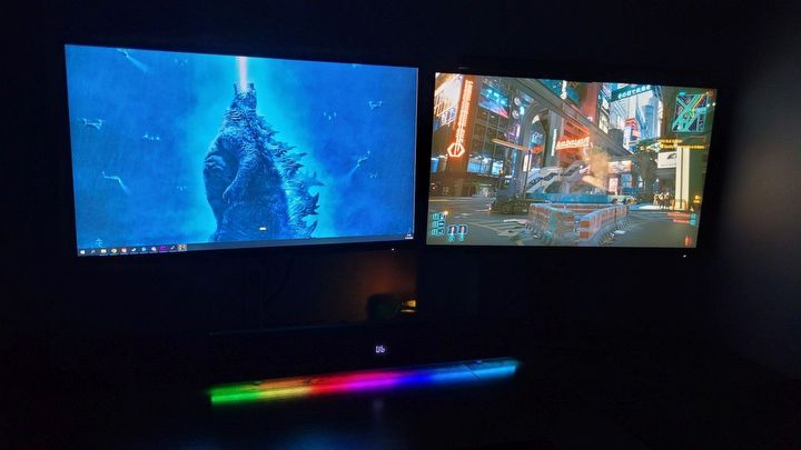 I wiecie co? Przez owego „malucha” miałem kolejną nieprzespaną noc, niekoniecznie związaną z pobudkami moich dzieci. Dźwięk wydobywający się z soundbara Creative Sound Blaster GS5 sprawił, że po ponad 4 latach od premiery po raz kolejny zanurzyłem się w szalonym i niebezpiecznym Night City. I muszę przyznać, że mam ochotę na kolejną zarwaną nockę. I to nie ze względu na samego Cyberpunka 2077, ale przede wszystkim na doświadczenie, jakim jest granie weń z soundbarem leżącym pod monitorami.