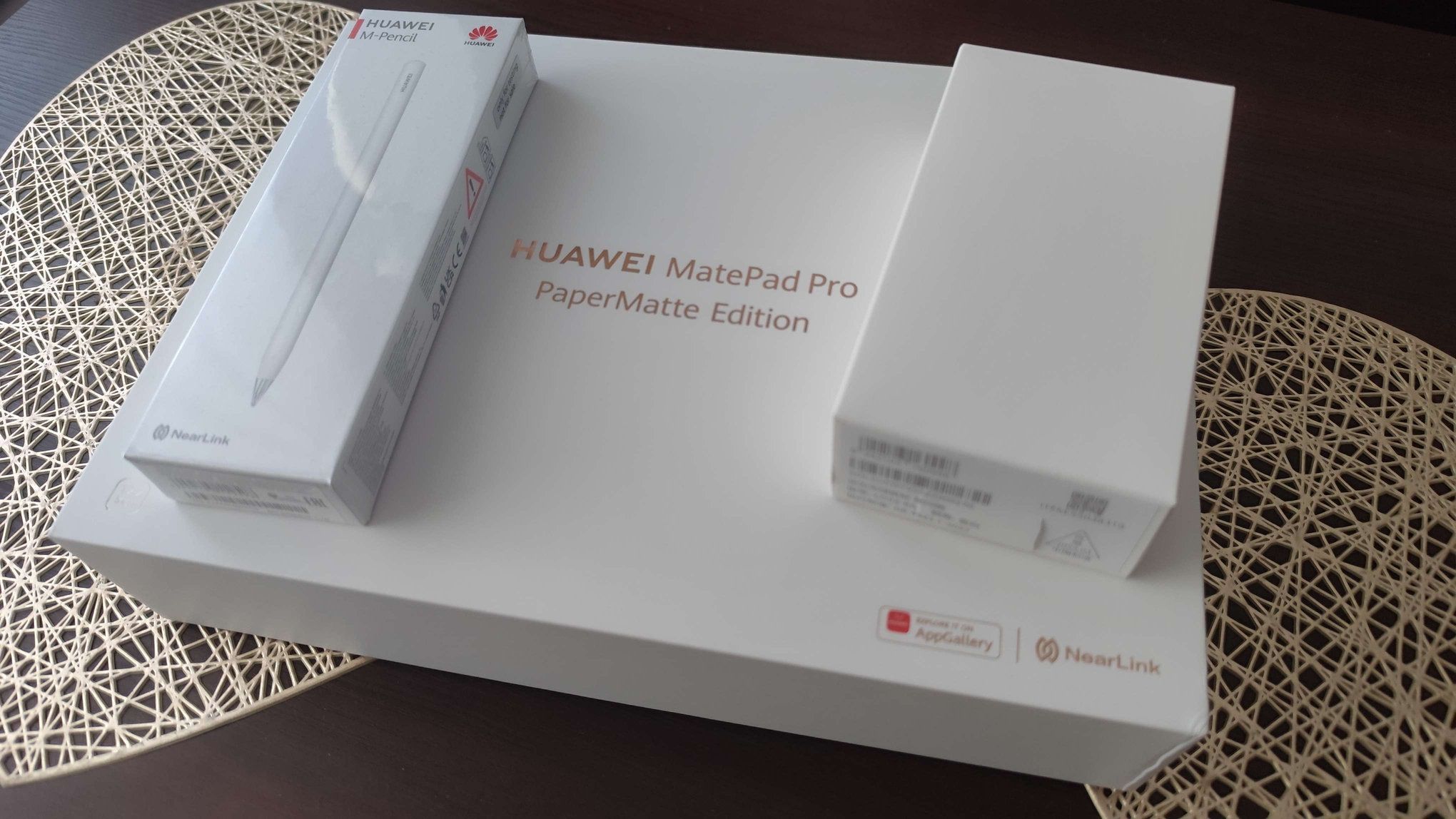 Trzeba przyznać, że Huawei potrafi sprawić, iż człowiek czuje, że obcuje z produktem premium. Otrzymujemy solidne kartonowe pudełko z elegancko wytłoczonymi literami, a przy tym minimalistyczne i eleganckie. Na szczęście jego wnętrze dorównuje prezentacji – w środku czekał na mnie tablet, dedykowana ładowarka oraz etui z dołączoną klawiaturą. Dodatkowo znalazło się miejsce dla firmowej ściereczki do czyszczenia ekranu – nie ukrywam, to bardzo miły dodatek. Nie zabrakło także klasycznej „papierologii”. W osobnych opakowaniach otrzymałem również pióro M-Pencil trzeciej generacji oraz myszkę CD23-R Nearlink.
