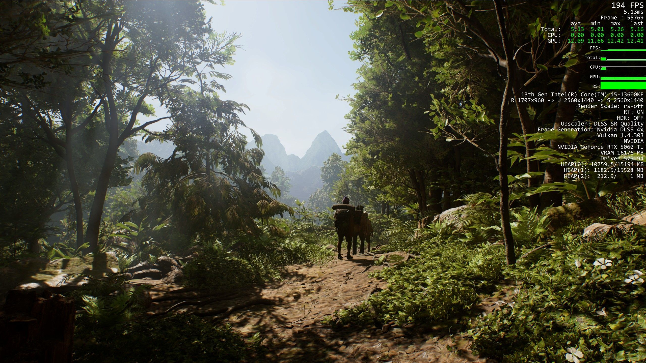Maximum/ Skalowanie rozdzielczości: DLSS 4 (tryb jakość)/ Dungeon:
