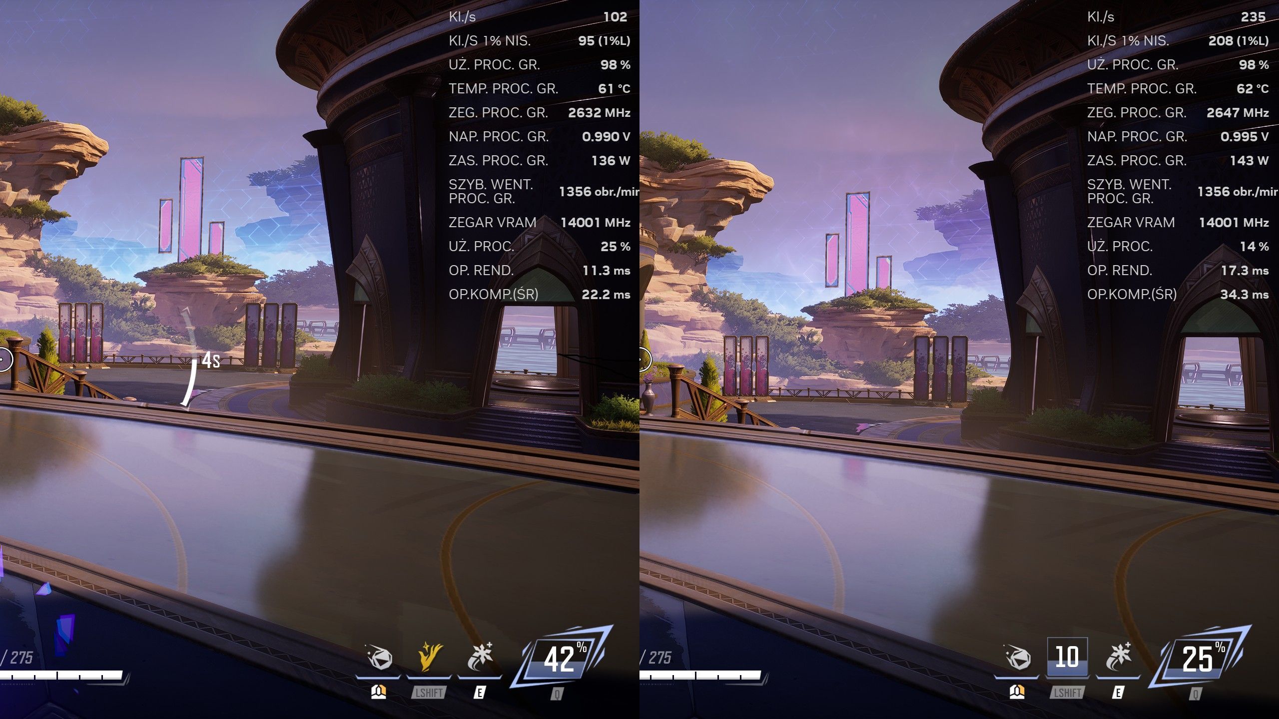 Zwróćcie uwagę na znikomą różnicę w opóźnieniu renderowania przed i po MFG.Źródło: Marvel Rivals, NetEase, 2024.