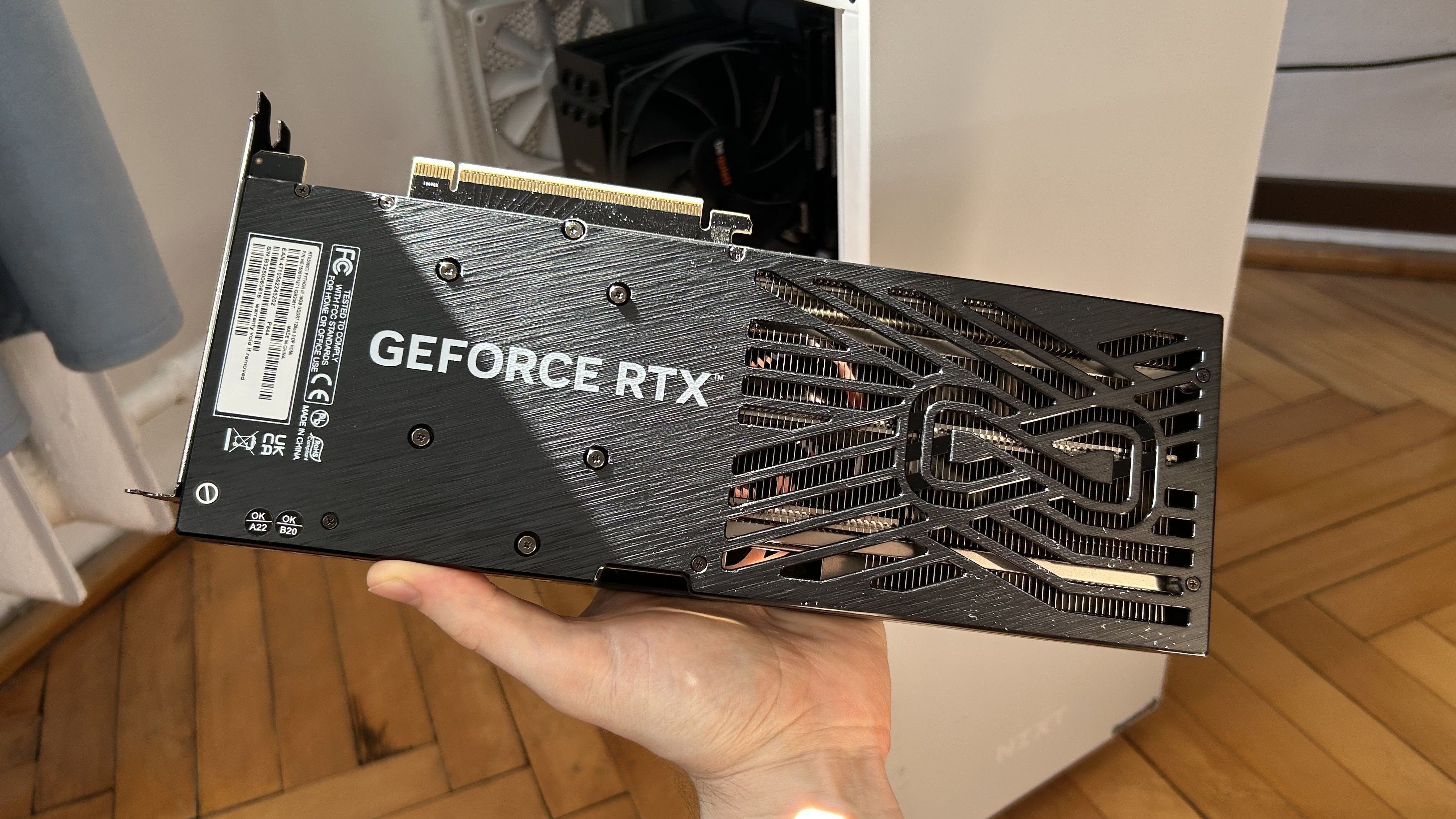 W trakcie testów korzystałem z karty RTX 5060 Ti 16 GB dostarczonej przez firmę Gainward, a dokładniej wersji Python III. W kwestii kultury pracy nie mam jej nic do zarzucenia. Jest bardzo cicha, przy obciążeniu niewiele głośniejsza niż bez. Niezaprzeczalnym atutem dla wielu będą jej stosunkowo małe wymiary. Będzie z pewnością nadawać się do mniejszych i niemających rzucać się w oczy obudów.