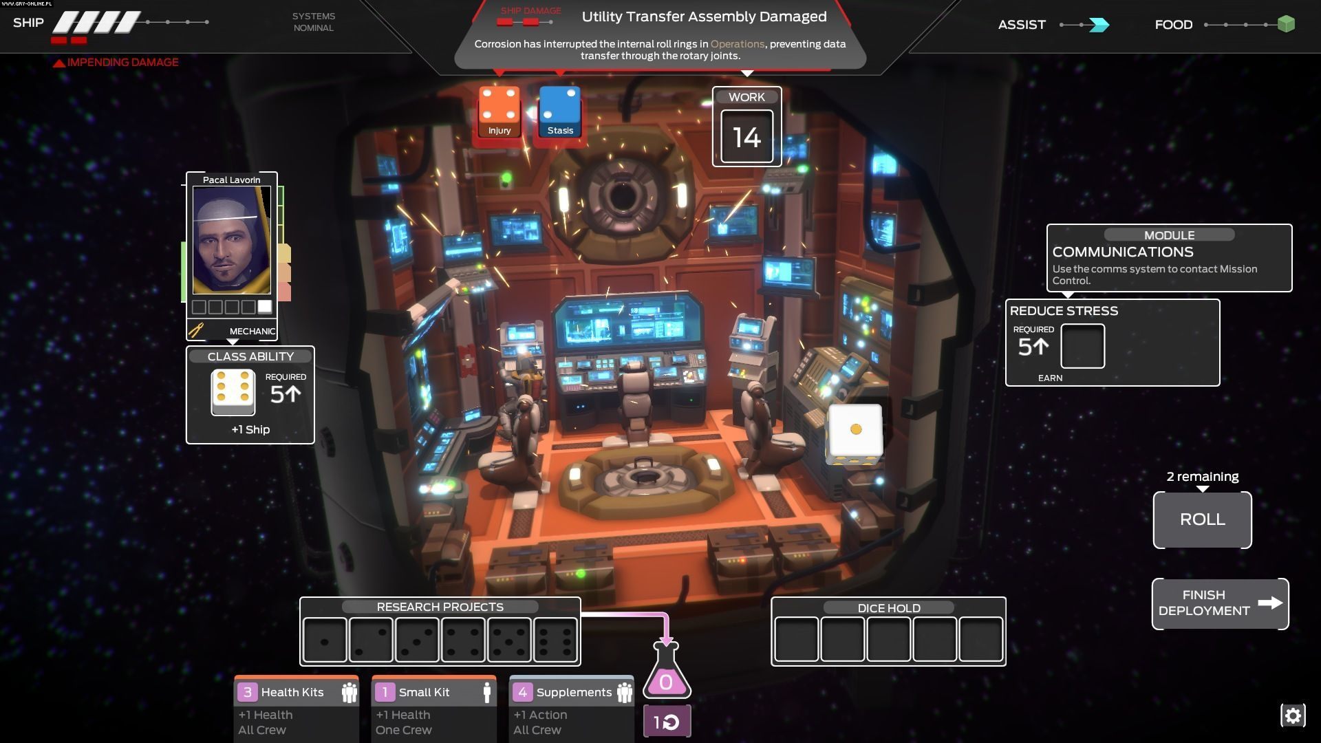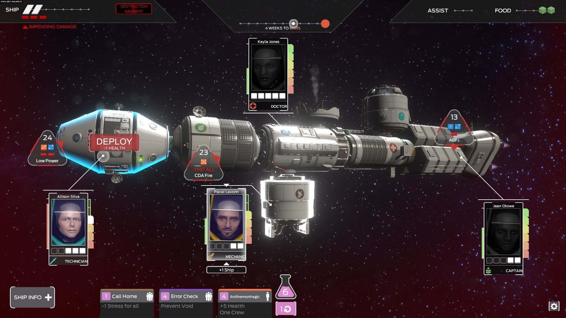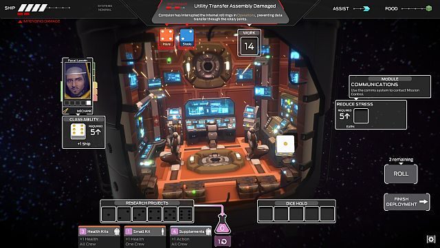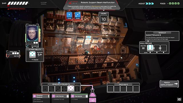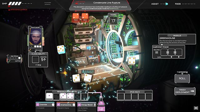 Poza wydawaniem rozkazu postaciom konieczne też będzie sprawne gospodarowanie surowcami. Każdy poważny błąd utrudni skuteczne ukończenie misji, a wyczerpujące się zapasy mają mieć poważny wpływ na przebieg rozgrywki. Nawet ciało zabitego astronauty przyda się więc do nakarmienia innych członków załogi. Autorzy inspirują się wyśmienitym FTL: Faster Than Light i chcą, aby nawet porażki zapewniały dużo dobrej zabawy, a losowość wydarzeń ma sprawić, że grę będzie można przechodzić wielokrotnie bez uczucia nudy. Co ciekawe, sporo z kalkulacji widocznych ma być na ekranie w formie rzutów kostkami. Otrzymamy sporo metod wpływania na ich wyniki, a same kostki mają wchodzić w interakcję ze statkiem i będą mogły np. wylecieć przez dziurę w kadłubie.