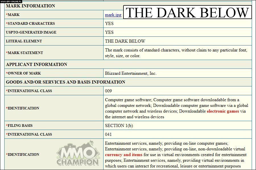 W amerykańskim urzędzie patentowym firma Blizzard Entertainment zarejestrowała znak handlowy The Dark Below. Jak można wyczytać na stronie WoWWiki jest to miejsce zamieszkałe przez różne rodzaju demony i pomioty, ściśle powiązane z uniwersum popularnego MMORPG-a – World of Warcraft. Istnieje raczej niewielkie prawdopodobieństwo, żeby znak towarowy był związany z Diablo 3, do którego niedługo ma zostać zapowiedziany pierwszy dodatek.