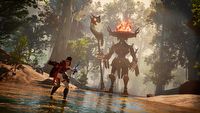Khazan, przynajmniej w demie, może korzystać z zestawów przeznaczonych do dual wieldingu (topór plus miecz, bez tarcz), sztaby wielkości ciężarówki, przepraszam, miecza dwuręcznego lub glewii – a wszystko w różnych odmianach, nie jesteśmy przywiązani do jednej sztuki żelastwa każdego rodzaju. Każdą bronią, której używałem, walczy się zdecydowanie inaczej, każda wymaga odmiennego wyczucia czasu i oferuje świetne wrażenia z okładania i sieczenia wroga. Oczywiście można też bazować na unikach i kontrach albo na dobrze wymierzonym podgryzaniu przeciwnika pojedynczymi atakami.