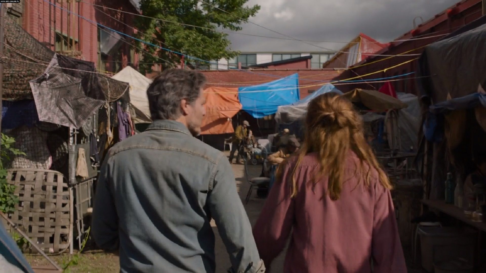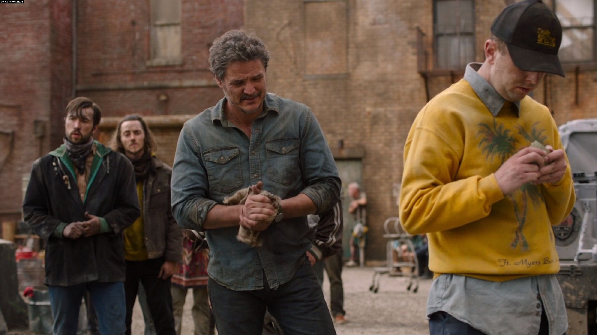 Skłoniło to nas do zestawienia ze sobą kilku wybranych kardów z gry – a konkretnie z The Last of Us: Part I – i serialu. Niektóre ujęcia z produkcji HBO można uznać za żywcem wyjęte z dzieła studia Naughty Dog, nawet jeśli czasami pewne elementy otoczenia tudzież postacie znajdują się po różnych stronach ekranu. Kiedy indziej podobieństwo można zaś dostrzec w scenerii czy w ogólnym kontekście zaprezentowanych wydarzeń. To ostatnie dobrze widać na szóstej parze grafik – w serialu widzimy Joela stojącego w kolejce po kartki na żywność, natomiast w grze obserwujemy z jego perspektywy ludzi, którzy robią dokładnie to samo.