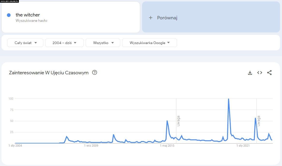 To, że wspomniane zjawisko działa, mogliśmy zauważyć po raz pierwszy w przypadku Wiedźmina. Sprawa jest tym bardziej interesująca, że autorzy wirtualnych przygód Geralta nie byli bezpośrednio zaangażowani w produkcję serialu i to nie oni wprawili koło w ruch. Netflix oczywiście musiał porozumieć się z Andrzejem Sapkowskim, a nie z „Redami”, jednak ci ostatni bardzo mocno skorzystali na całej inicjatywie, czego dowodzą wyniki popularności frazy „the witcher” w Google Trends.