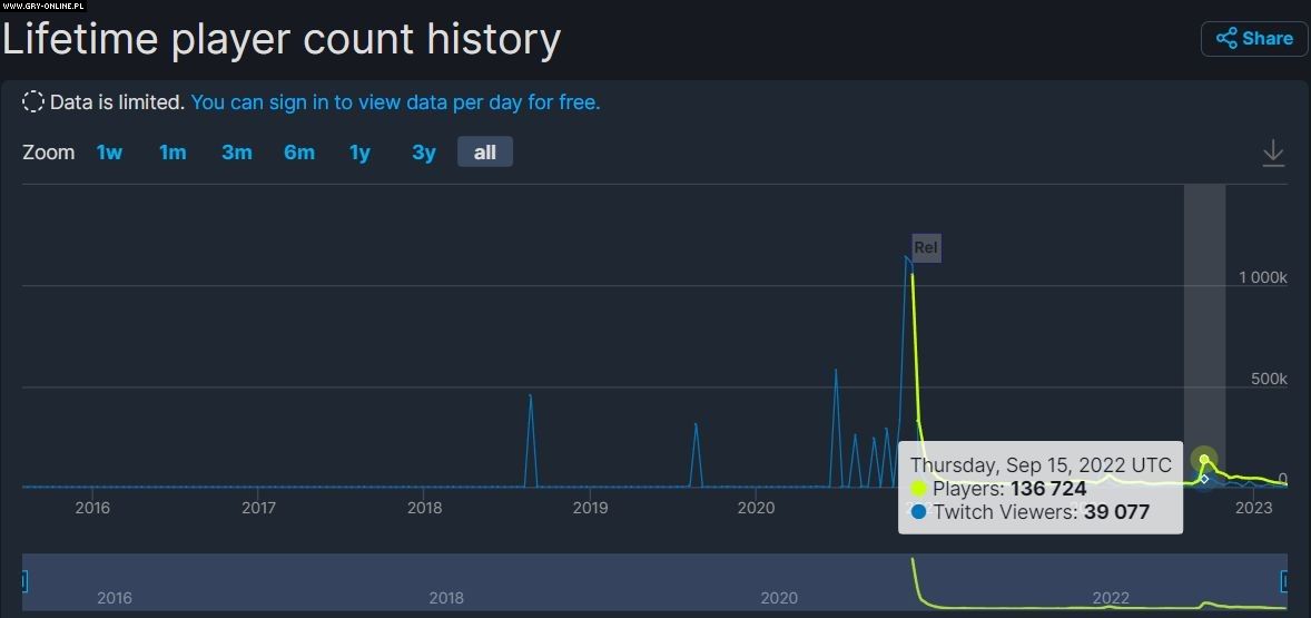 Czy miało to wpływ na popularność gry? Odpowiedź brzmi: tak, choć znów musimy założyć, że fenomenalny wynik z dnia premiery (1 054 386 osób grających jednocześnie na Steamie 12 grudnia 2022) nigdy nie zostanie pobity. Jednak kolejny skok, blisko dwa lata po debiucie, nastąpił przy okazji trafienia na Netflixa serialu Cyberpunk: Edgerunners. Wynik 136 724 jest najlepszy od 7 stycznia 2021 roku, kiedy kurz po premierze Cyberpunka 2077 zaczął opadać i nigdy później zainteresowanie grą nie osiągnęło już tak wysokiego pułapu.