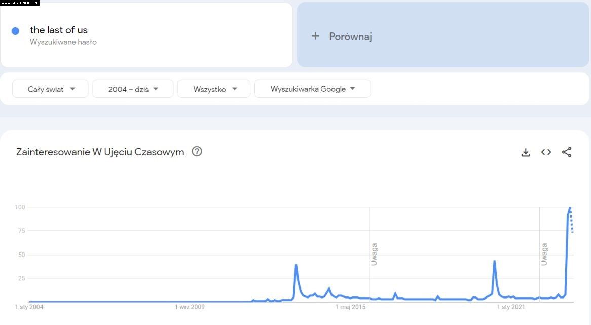 The Last of Us podąża podobną ścieżką. Serial HBO to nowy fenomen, który przyciągnął wielu widzów wcześniej nieznających historii Joela i Ellie. Miesiące, kiedy fraza „the last of us” była najczęściej wpisywana w wyszukiwarce Google, to styczeń i luty 2023 – czyli wtedy, kiedy emitowano kolejne odcinki postapokaliptycznej produkcji. Poprzednie, bardzo wyraźne wzrosty, wypadły oczywiście w okolicy premiery pierwszej i drugiej odsłony tej serii, ale nijak nie mogą one konkurować z tym, co zdarzyło się w ostatnich tygodniach.