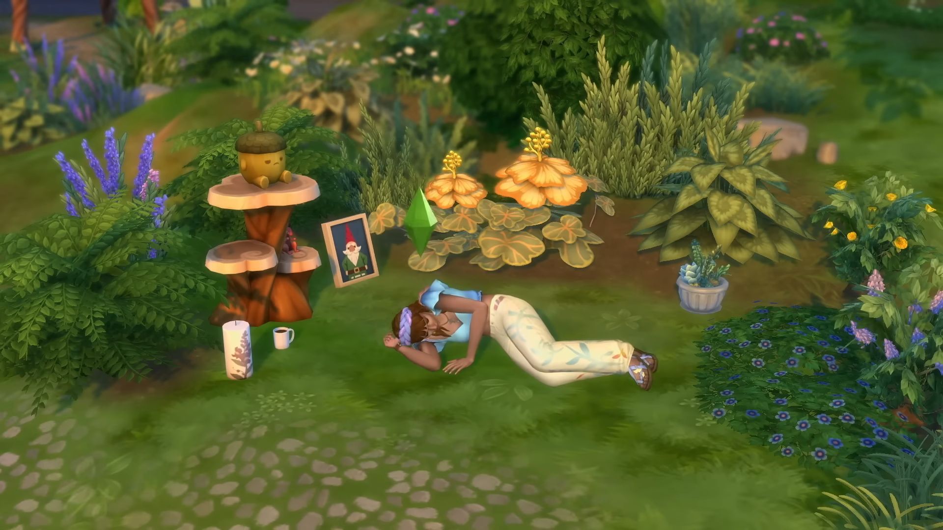 Poza uroczymi miejscami na zewnątrz otrzymujemy także dość dużą porcję nowych elementów wystroju wnętrz. Chociaż część z nich podkręca akcenty związane z przyrodą do dość teatralnego poziomu, współgrającego z barwnymi wróżkami, większość sprawdzi się w dowolnym zapisie, w domach simów zasługujących na bardziej niecodzienne wnętrza. Cieszę się także, że po latach dostaliśmy tak banalny dodatek jak rośliny doniczkowe z prawdziwego zdarzenia, zamiast krzewów ogrodowych wstawianych do domu. Stanowią zawartość, którą trudno byłoby w pełni zastąpić innymi rozszerzeniami i bije od nich prawdziwa dbałość o szczegóły.