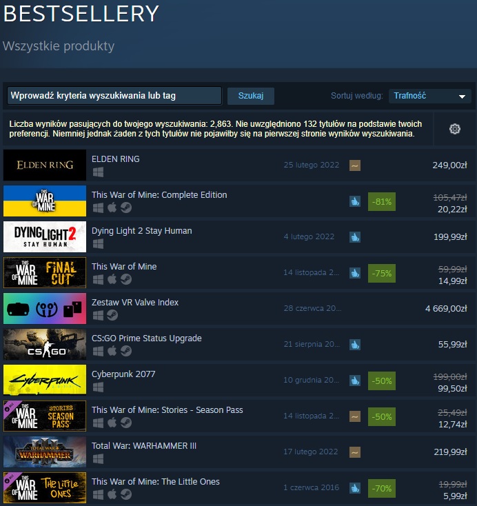 Zgodnie z tym, o czym pisaliśmy wczoraj w wiadomości poświęconej wojnie na Ukrainie, rodzime 11 bit studios przeceniło grę This War of Mine wraz z DLC i ogłosiło, że przychód wygenerowany przez nią do 3 marca trafi do Ukraińskiego Czerwonego Krzyża jako pomoc dla ofiar. Decyzja dewelopera przypadła graczom do gustu, dzięki czemu produkcja znalazła się w ścisłej czołówce na liście bestsellerów Steama.