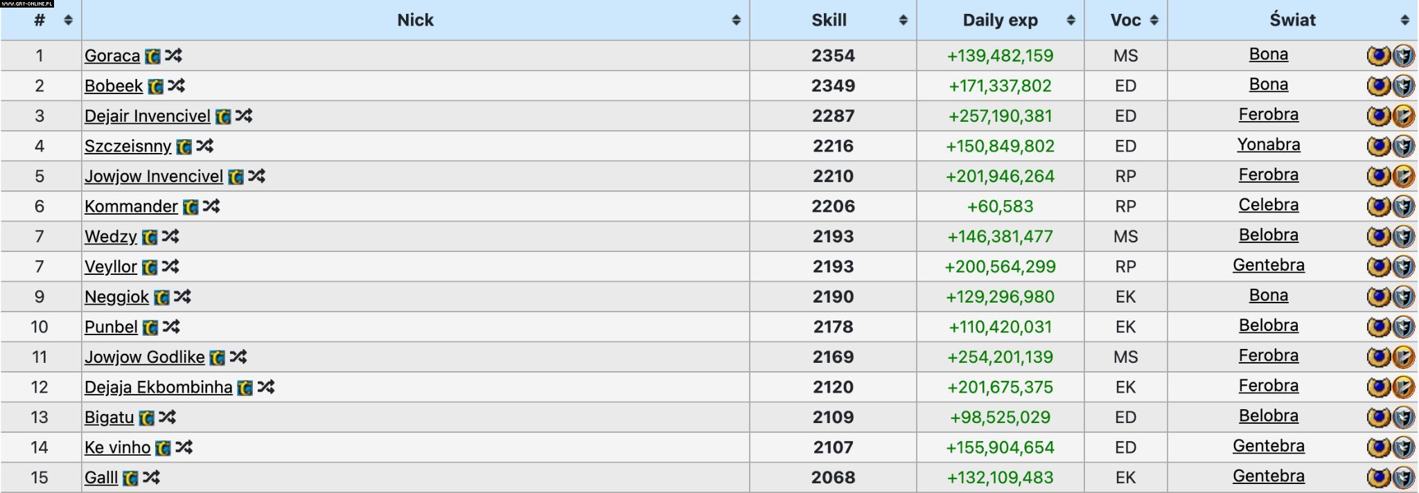 Ogólnie, średnia expa generowanego przez polską parę wynosi około 150/160 milionów dziennie. Dejair Invencivel stara się dogonić i przebić poziom Goracej i Bobeeka, ale wciąż pozostaje na trzecim miejscu w tabeli rankingowej. W tym celu zaczął intensywnie expić notując bardzo wysoką średnią.