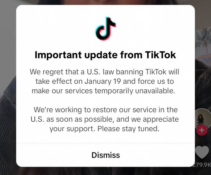 Z przykrością informujemy, że amerykańskie prawo zakazujące TikTok wejdzie w życie 19 stycznia i zmusi nas do tymczasowego zawieszenia naszych usług.