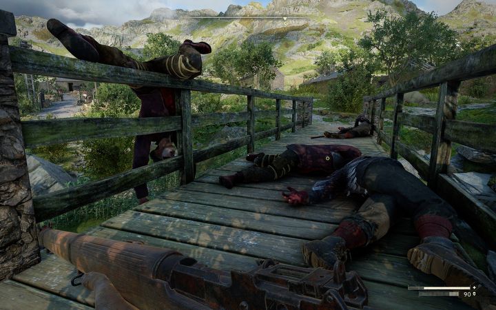 Zauważyłem także, że potrafią oni strzelać w ściany bądź w inne obiekty, bo akurat znajduje się tam przeciwnik. Nie próbują manewrować, czy dostać się do środka, tylko pakują kolejne pociski w powierzchnię nie do przebicia. Jeden żołnierz tak uparcie chciał pokonać wroga, że za każdym razem jak wchodziłem do wioski, z namiętnością ładował ołów w niewinną ścianę. To się nazywa zaangażowanie!