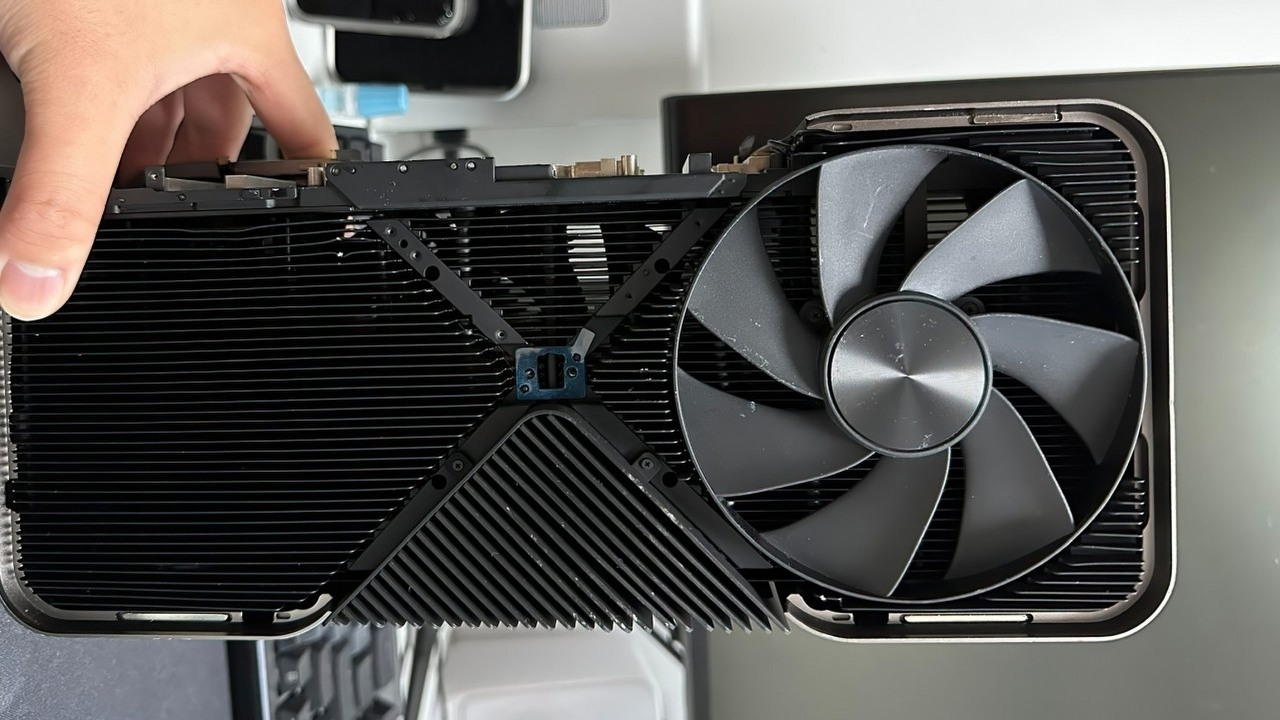 Przewody zostały przeprowadzone wokół radiatora dlatego, że prototypowa karta graficzna miała mieć boczną płytkę PCB – nietypowe rozwiązanie, w którym wszystkie układy umieszczone są równolegle do płyty głównej komputera. Niestety nic na razie nie wskazuje na to, abyśmy mogli przekonać się, jak taka idea sprawdza się w praktyce. Nvidia milczy o potencjalnej realizacji projektów Titan lub choćby RTX 4090 Ti.