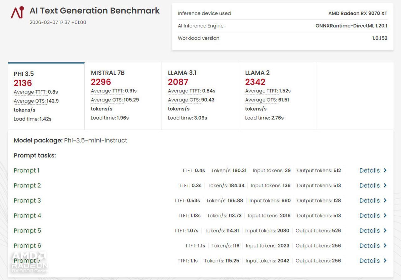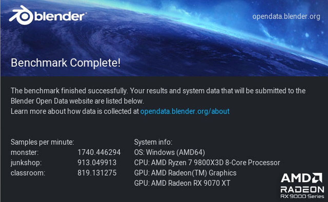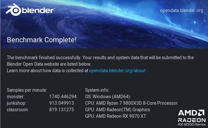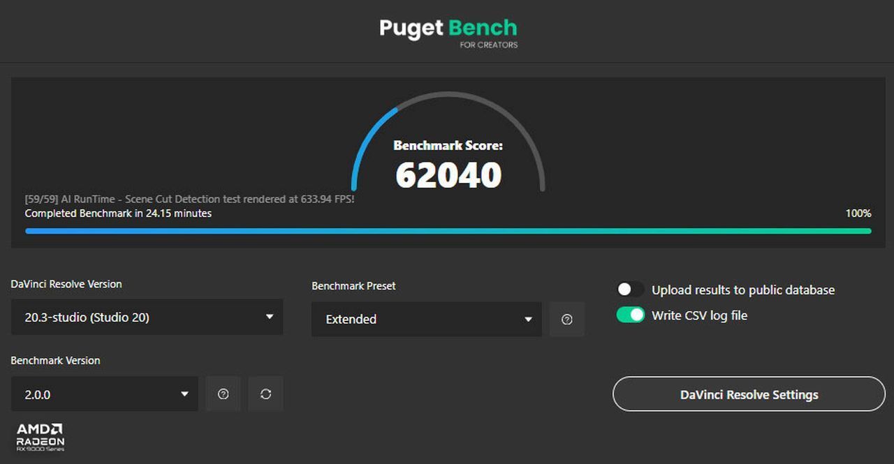 Oczywiście to nie jest tak, że karta dla graczy zupełnie nie radzi sobie w innych zastosowaniach. Pisałem już, że z takim streamingiem (transmisją np. swojej gry na żywo) nie ma najmniejszego problemu, ale sprawdziłem też inne zastosowania. Karta uzyskała adekwatny wynik w rozszerzonym teście Puget Bench dla Twórców, w którym sprawdziłem wydajność w montażu wideo – aplikacja DaVinci Resolve Studio 20.3. Całkiem korzystnie wyglądają też rezultaty w aplikacji do renderowania grafiki 3D (Blender) oraz testy pracy bezpośrednio z modelami AI (modele językowe oraz generowanie grafiki). Poniżej wszystkie te wyniki, natomiast wnioski są takie, że w sposób casualowy lub może bardziej nawet hobbystyczny śmiało można wykorzystywać kartę GIGABYTE Radeon RX 9070 XT Gaming OC ICE w zastosowaniach kreatywnych, jednocześnie ciesząc się wysoką kulturą pracy karty w sytuacji, gdy cisza jest nawet bardziej wskazana niż podczas gry.
