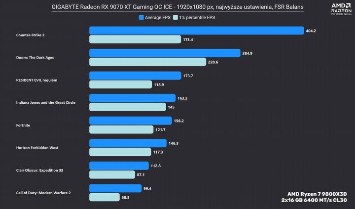 Wszystko to przy poborze energii utrzymanym w ryzach, zatem nie trzeba takiej karty parować z ekstremalnie mocnym zasilaczem i nie potrzebuje ogromnej i super wentylowanej obudowy, aby sprawnie odprowadzać ciepło. Dodać nalży też obecność dwóch enkoderów wideo oraz ogromną poprawę jakości samego kodowania (względem poprzedniej generacji) i wsparcie dla nowoczesnego kodeka AV1. To wszystko sprawia, że Radeon RX 9070 XT może być również sprzętem dla streamera.
