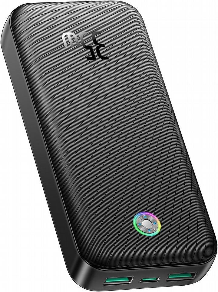 Na pokładzie znajdziesz 3 porty wyjściowe – dwa USB-A oraz jeden USB-C – dzięki którym możesz zasilać kilka urządzeń jednocześnie. Co więcej, technologia szybkiego ładowania PD 22,5 W pozwala znacząco skrócić czas uzupełniania energii – zarówno w urządzeniach, jak i w samym powerbanku. To szczególnie ważne w nagłych sytuacjach, gdy nie masz kilku godzin na czekanie, aż telefon odzyska pełną moc. Wystarczy kilkanaście minut podpięcia, by znów działać na pełnych obrotach.