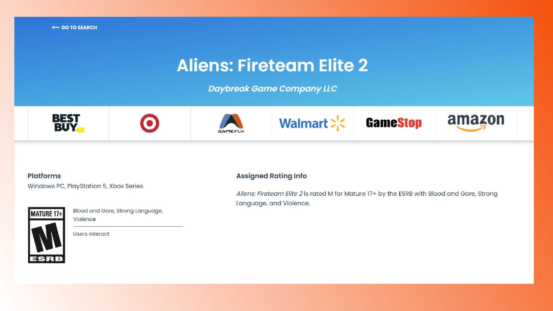 W chwili pisania tych słów karta gry na oficjalnej stronie ESRB, która na chwilę ujrzała światło dzienne, już nie działa. Niemniej ostały się po niej zrzuty ekranu, a jeden z nich możecie zobaczyć poniżej. Jak wynika z ujawnionych tam informacji, za Aliens: Fireteam Elite 2 stoi inna firma (Daybreak Game Company), a sama produkcja porzuci balast w postaci ósmej generacji konsol, zmierzając wyłącznie na komputery osobiste, PlayStation 5 oraz Xboksy Series X/S.