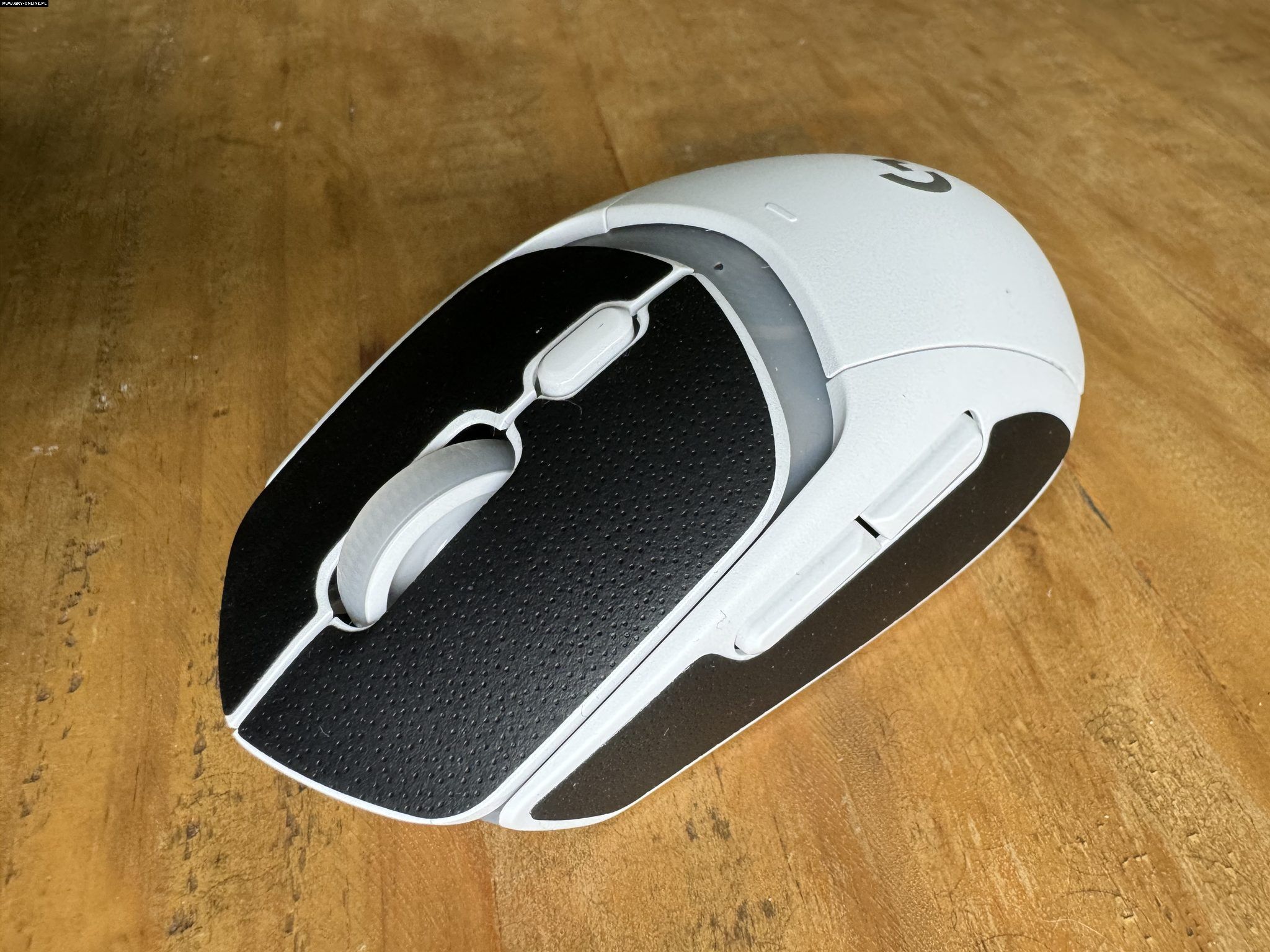 Z reguły nie korzystam z gripów, czyli specjalnych oklein do myszek, które zwiększają stabilność chwytu. Przypomina mi to trochę strzelanie z armaty do wróbla i choć poprawia chwyt, to nawet i bez dodatkowej powłoki myszka w większości przypadków leży wystarczająco pewnie w dłoni. W przypadku Logitecha G309 Lightspeed było jednak inaczej i właściwie uratowały mnie gripy dołączone do opakowania.