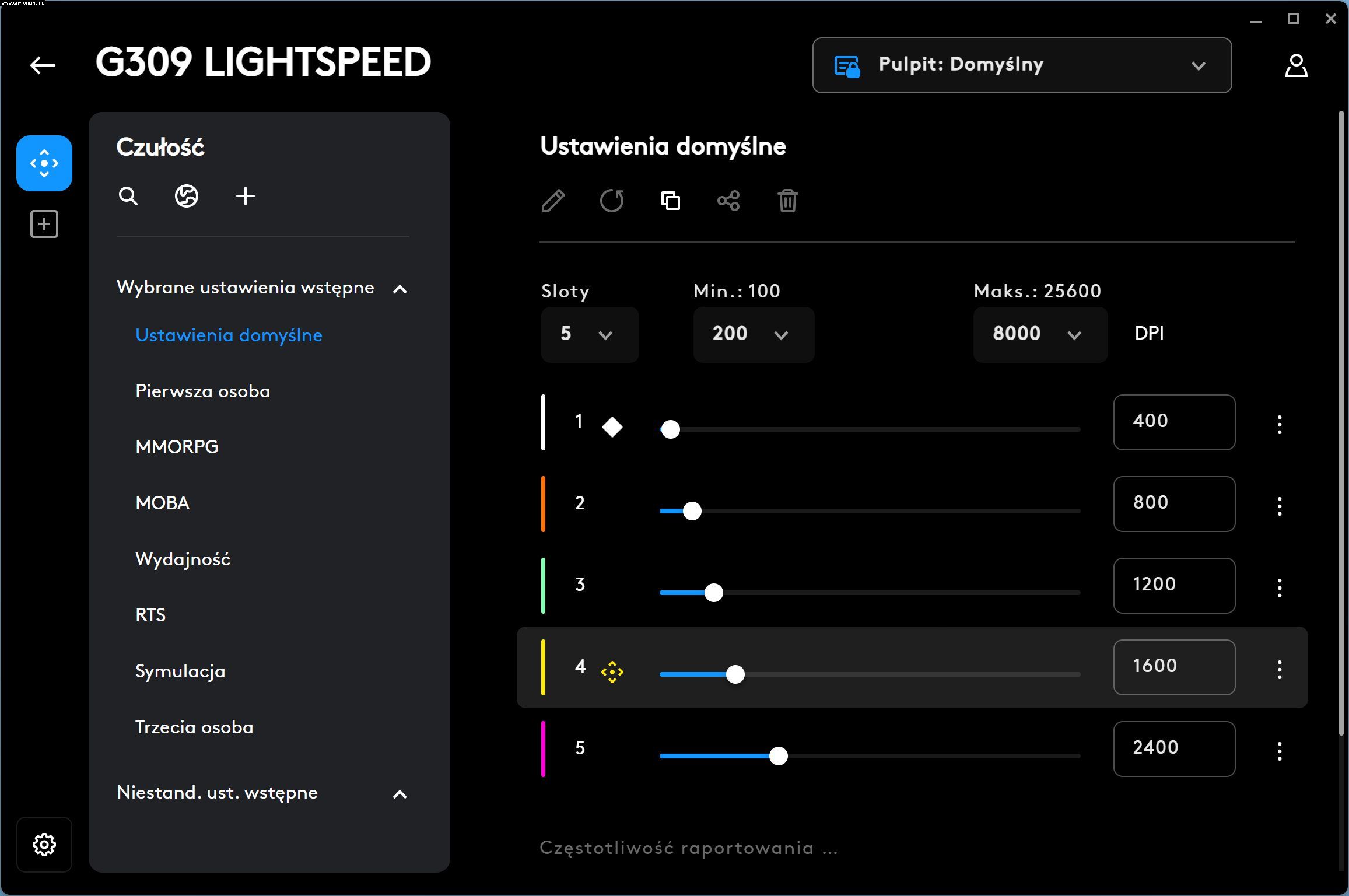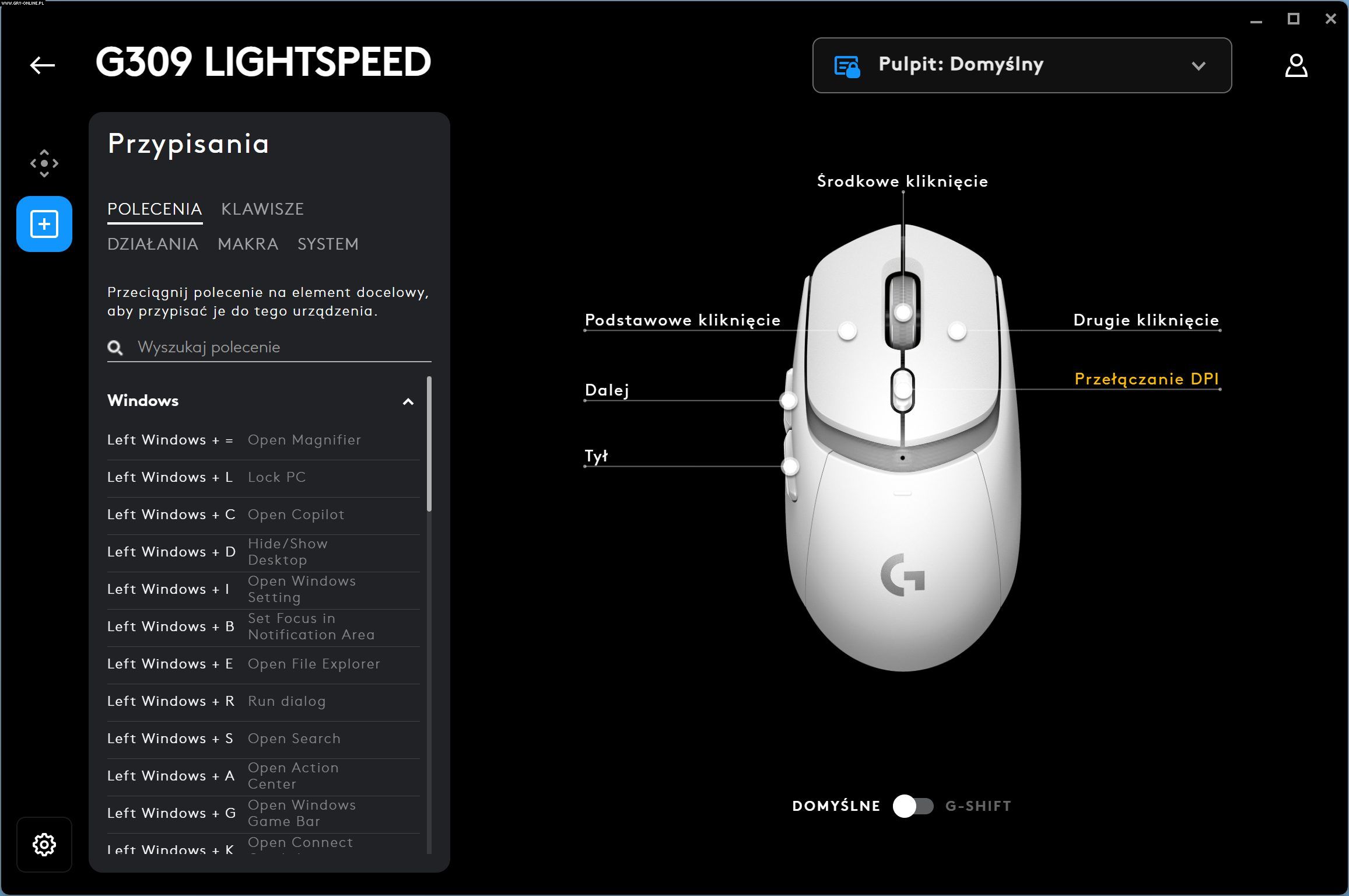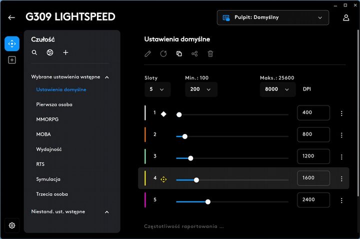 Myszką zarządzamy przy pomocy aplikacji Logitech G HUB, wspólnej dla urządzeń szwajcarskiego producenta.